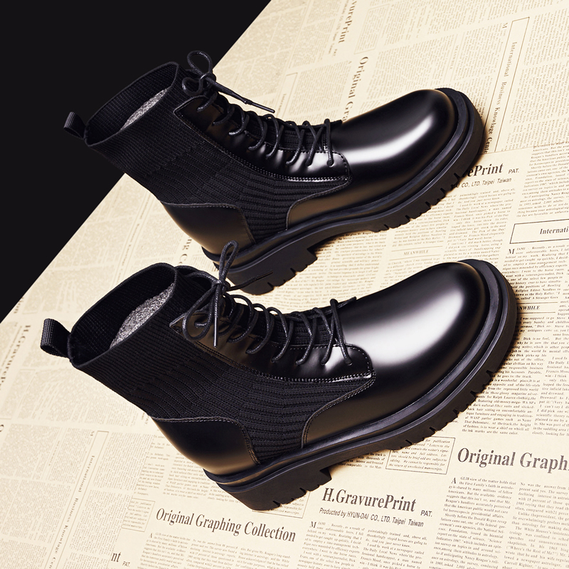 DREAMBOX钧博水洗马皮高帮工装鞋2025秋冬新款防滑厚底增高马丁靴