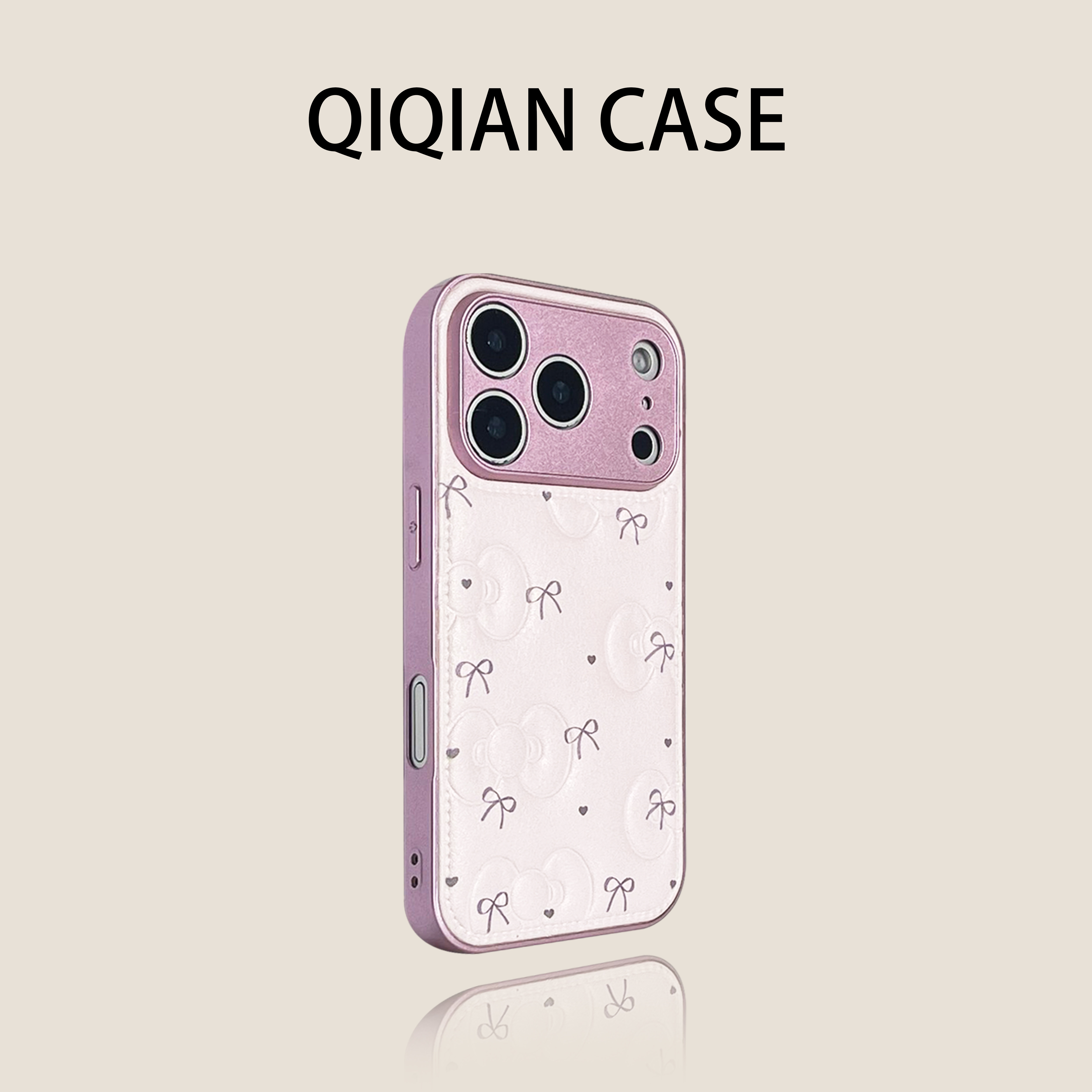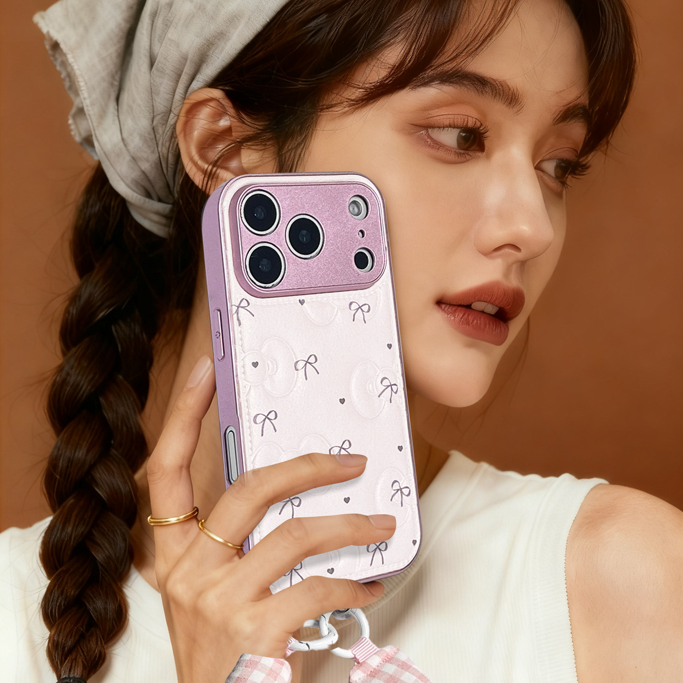 启乾 冬季新款肤感直边鼓包蝴蝶结腕带iPhone17/16手机壳适用苹果15/14promax皮质软壳链条挂绳趣味可爱ins风