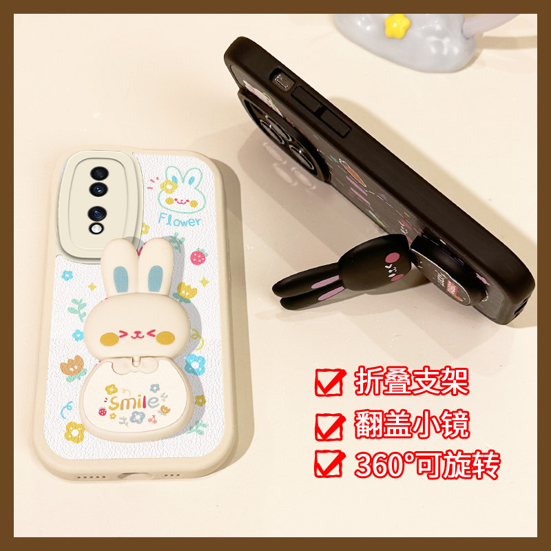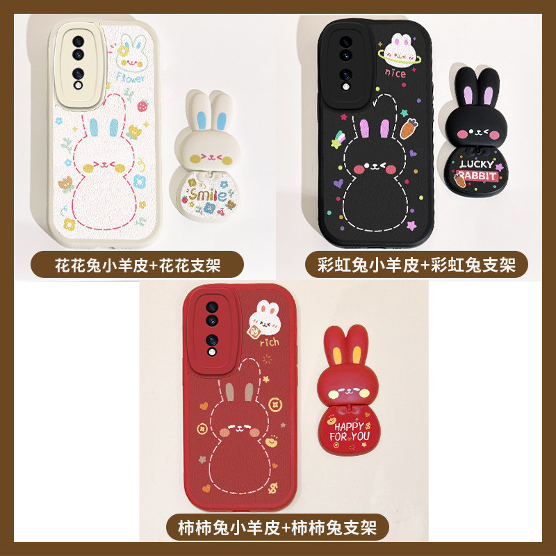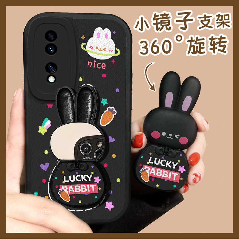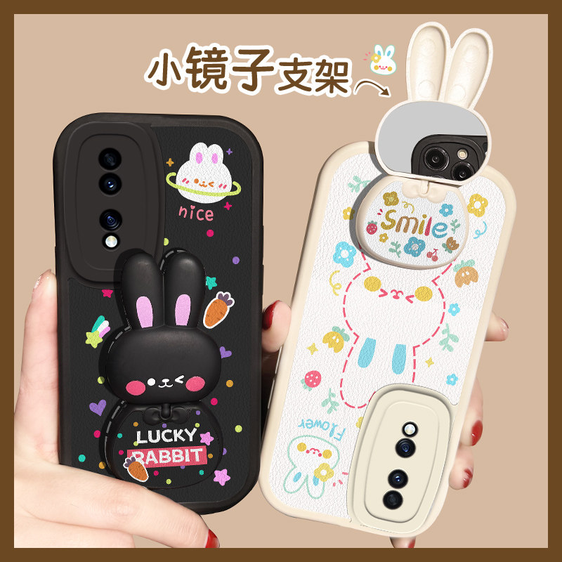 适用于华为荣耀80手机壳兔子夏季70/60pro小羊皮防摔50se情侣镜子支架360°旋转保护套20/30s新款v40/30全包