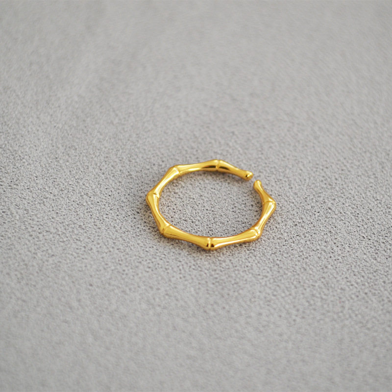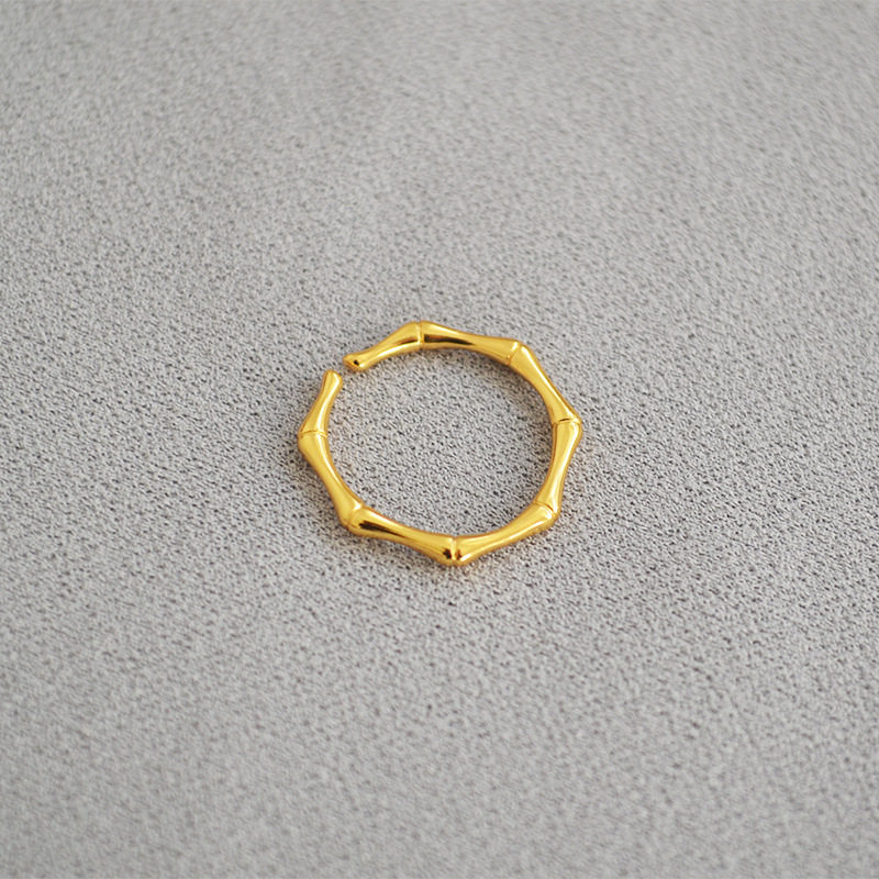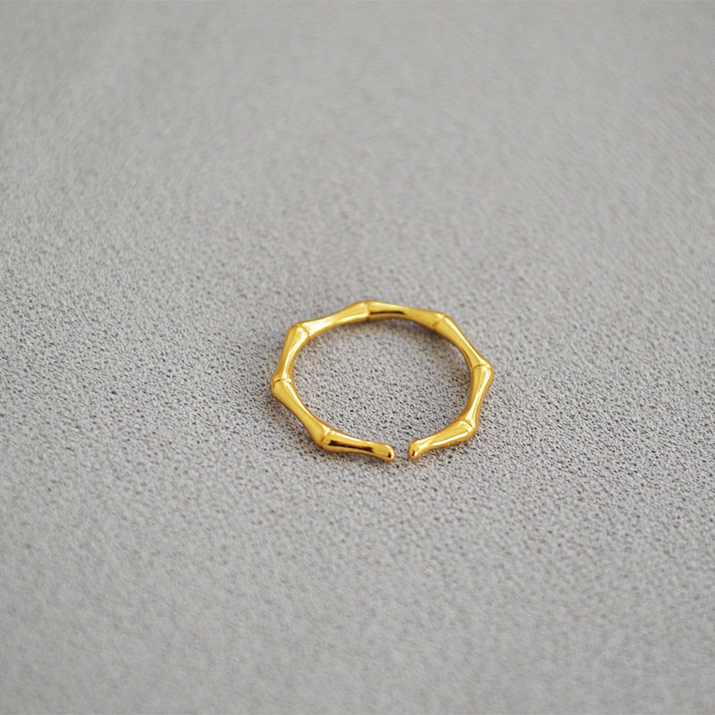 欧美饰品黄铜镀金摩登简约精致竹节造型时尚个性细戒指食指戒叠带