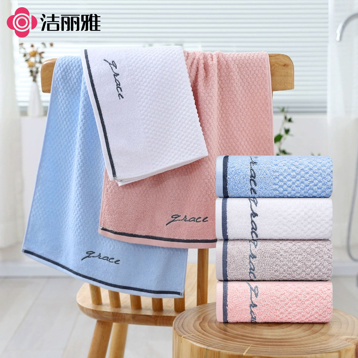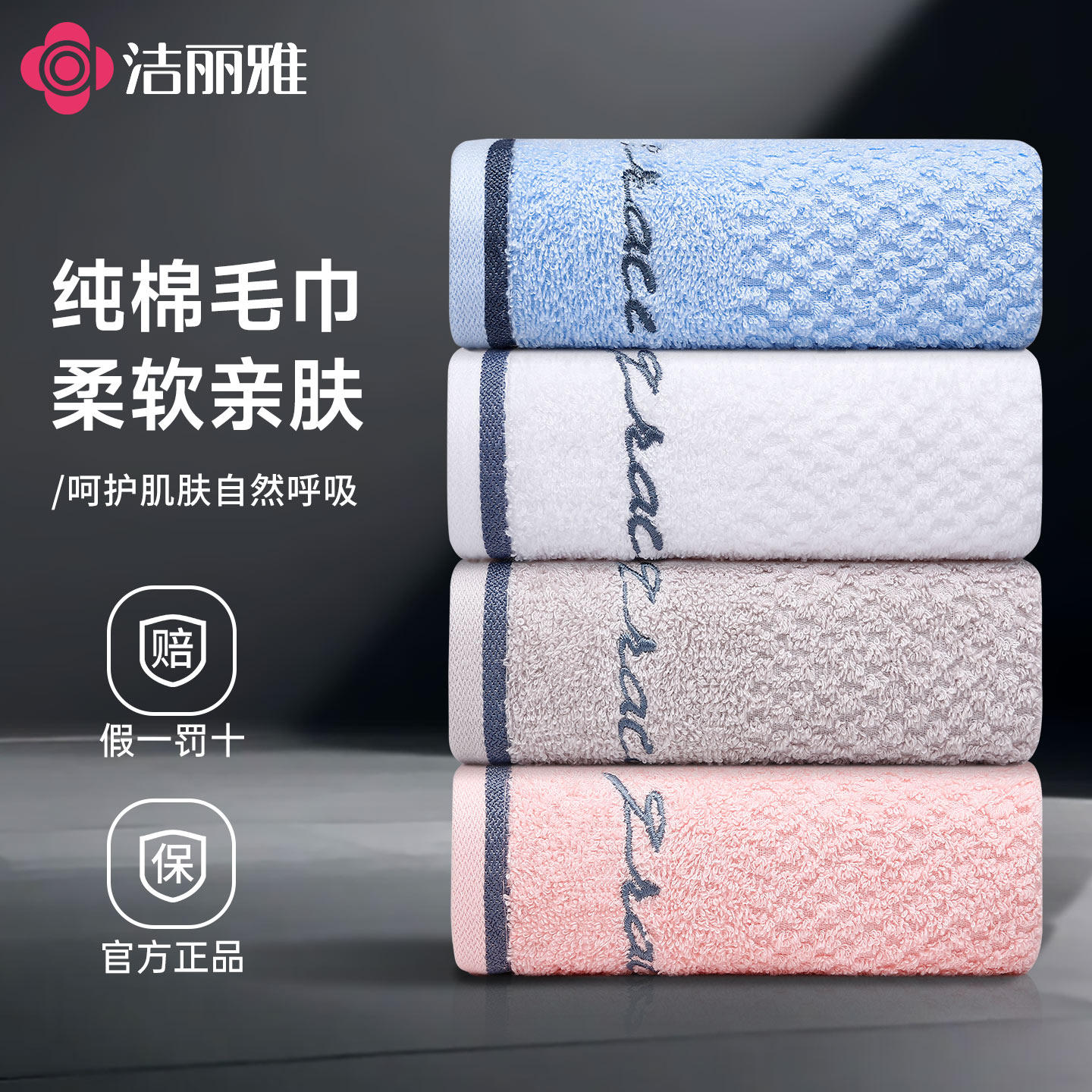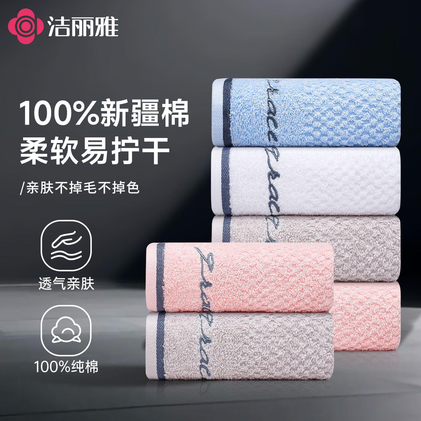 洁丽雅纯棉毛巾5A抑菌加厚吸水成人家用柔软亲肤不易毛不掉絮面巾