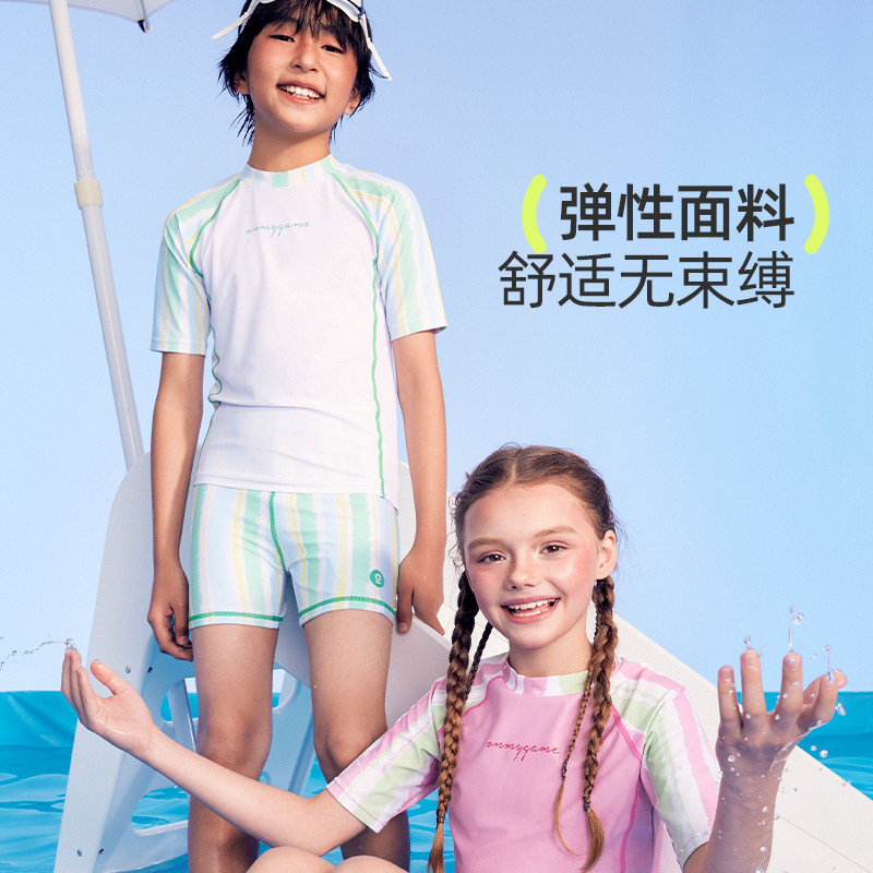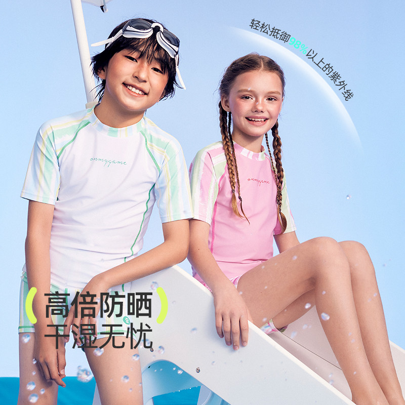 onmygame儿童分体泳衣夏季男女童短袖泳装防晒抗氯抗菌A类25新款