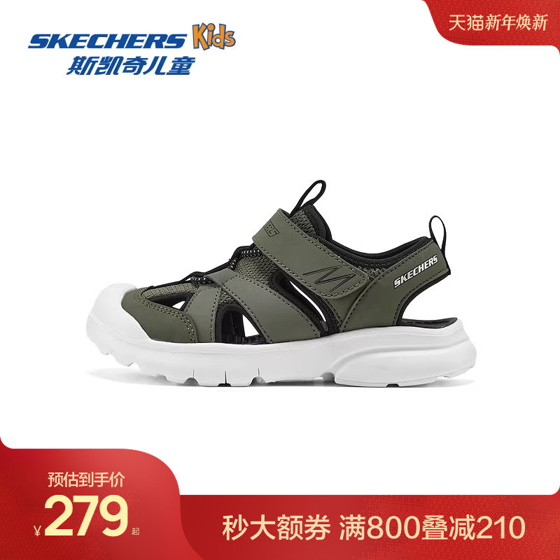 Skechers斯凯奇男童夏季轻盈舒适包头凉鞋儿童透气休闲运动凉鞋