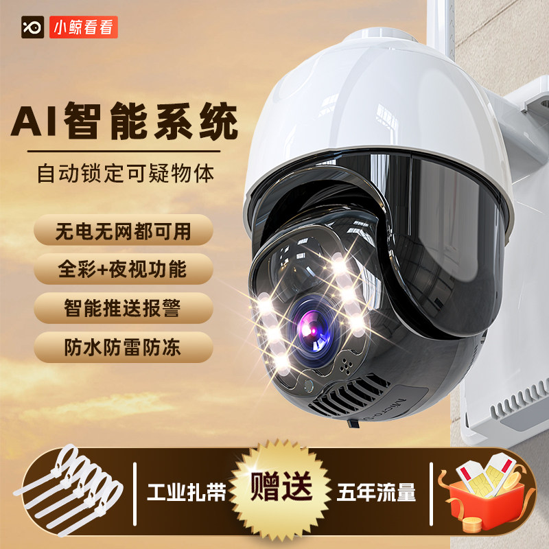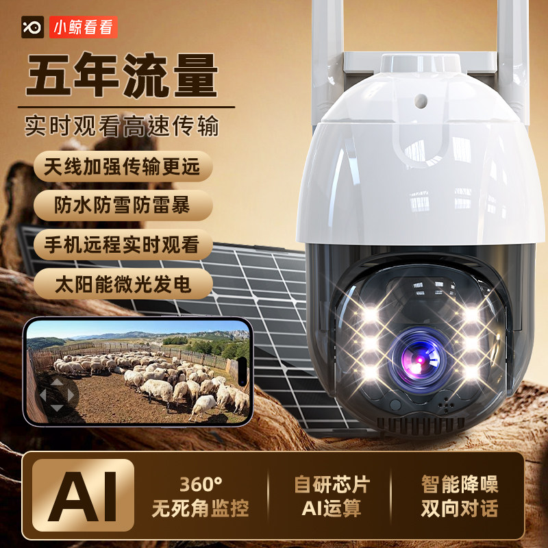 4G款太阳能摄像头免费流量无电无网手机远程户外监控无死角高清