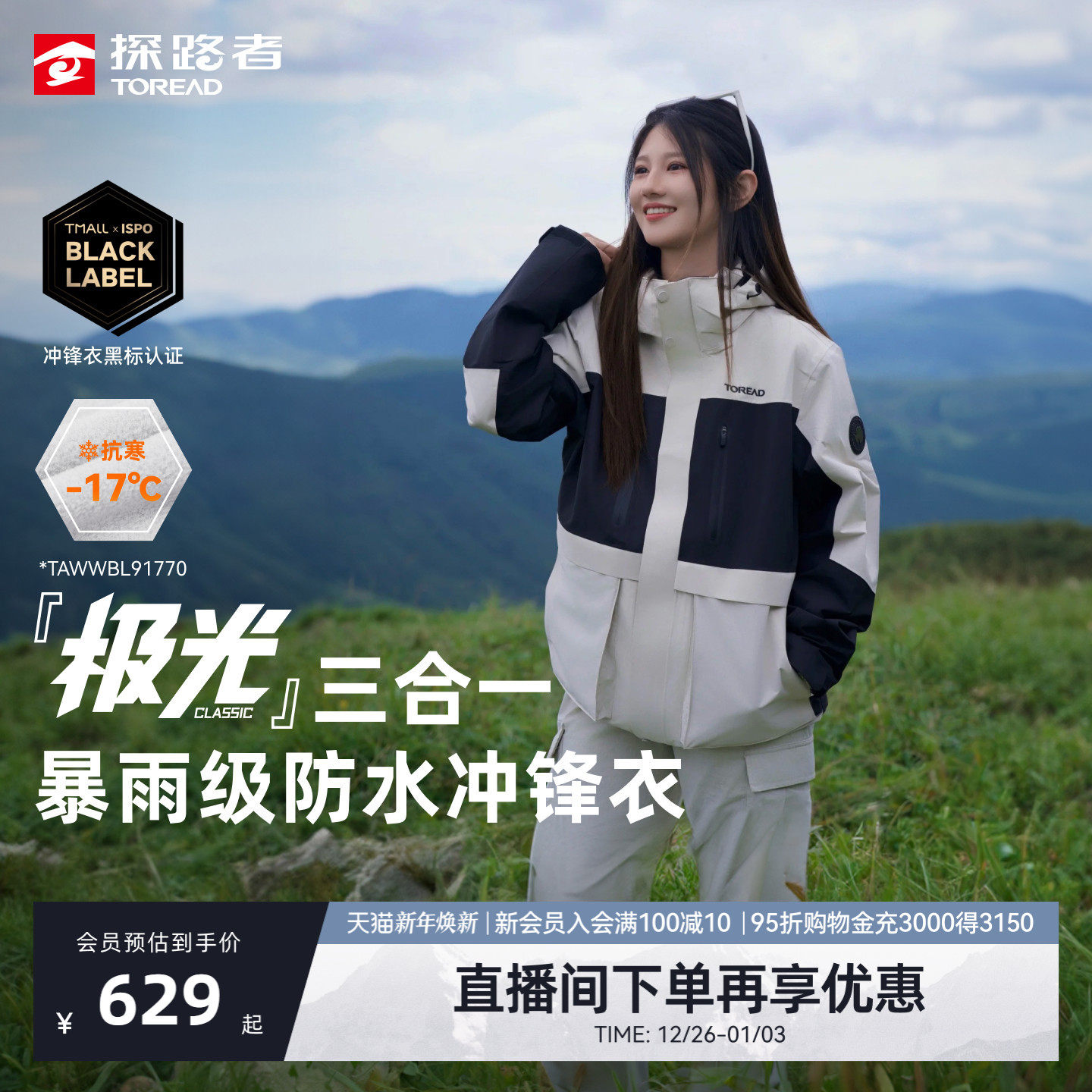 探路者硬壳冲锋衣户外登山徒步防风暴雨级防水保暖三合一外套男女
