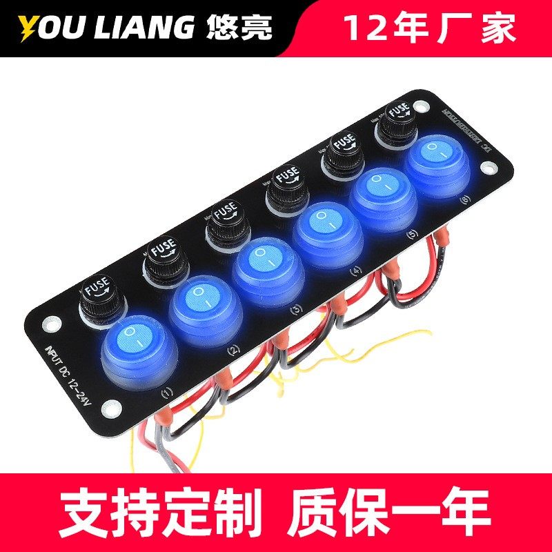 房车轮船游艇汽车载改装可置换保险丝座6开关组合面板配件加装