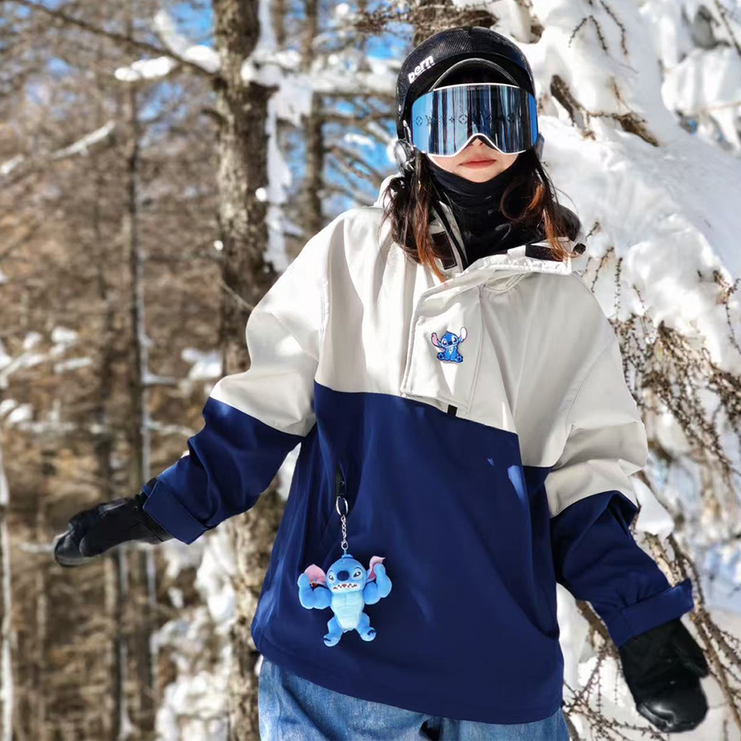 美式迷彩加绒滑雪服套装单板防水保暖小众户外滑雪衣裤冬季开衫