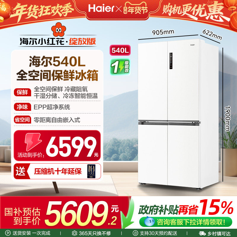 【26年新国补】海尔小红花540L双开四门全空间零嵌入式超薄电冰箱