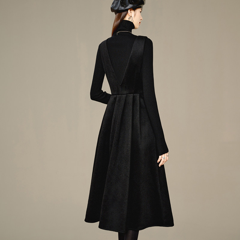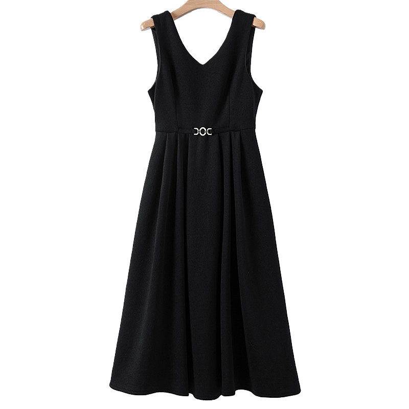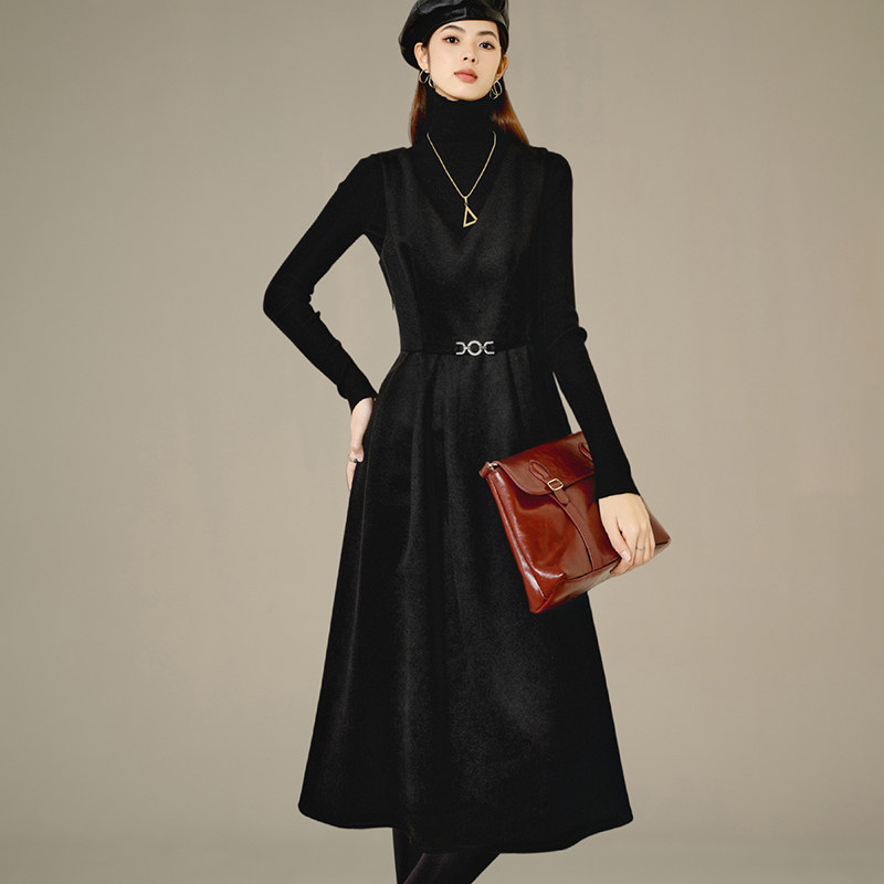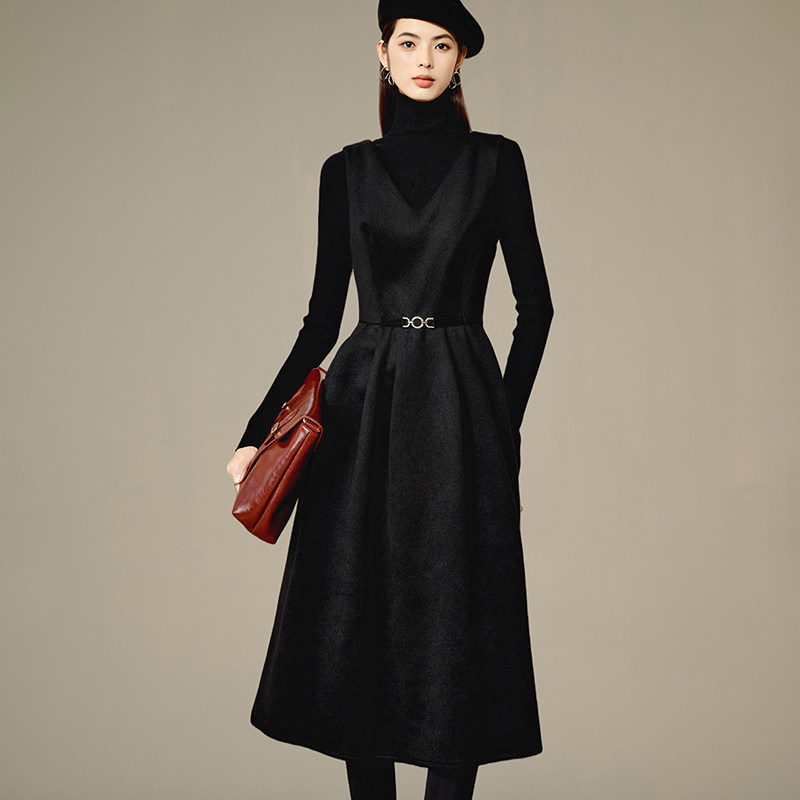 晚白2025年冬新款纯色淑女气质毛呢背心裙保暖百搭羊毛无袖连衣裙