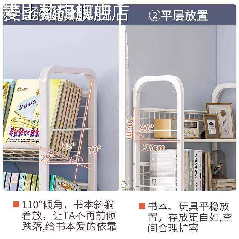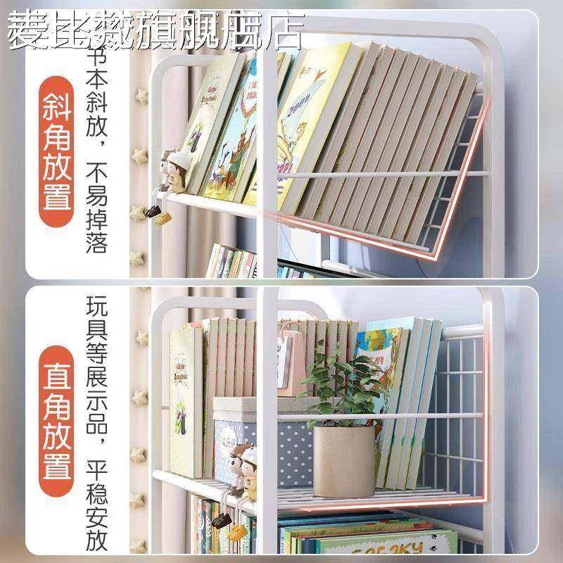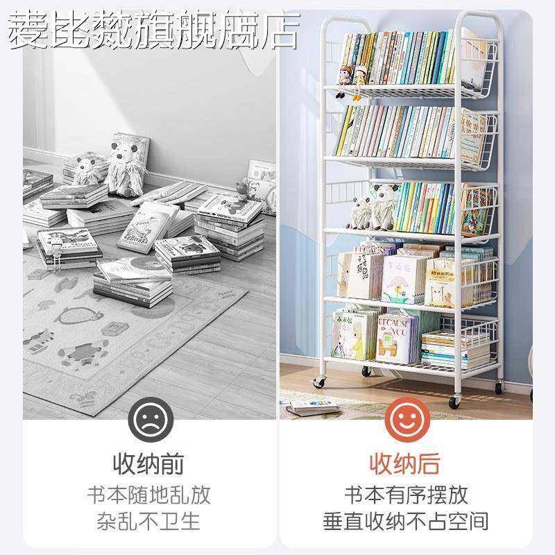麦比梵书架落地置物架移动带轮多层家用儿童零食收纳小推车简易铁艺书柜床笠拉车