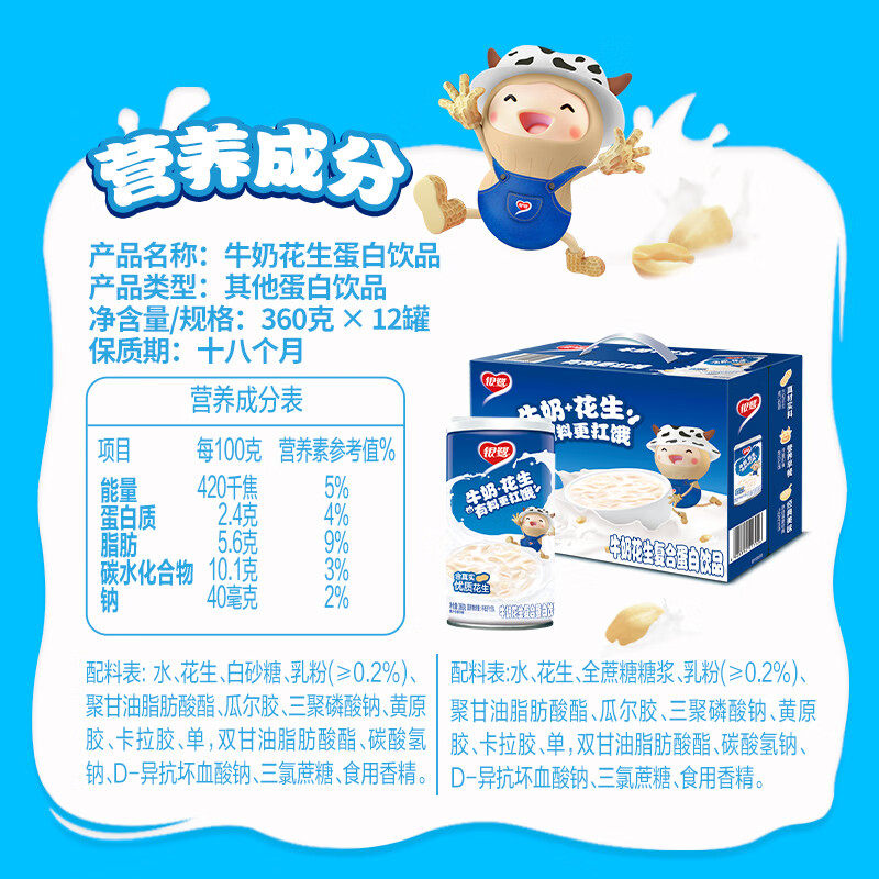 银鹭牛奶花生整箱复合蛋白饮品360g*12罐营养花生奶饮料花生汤