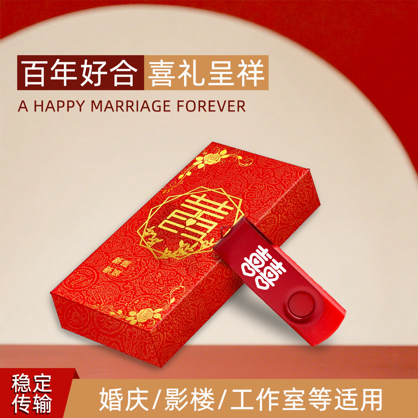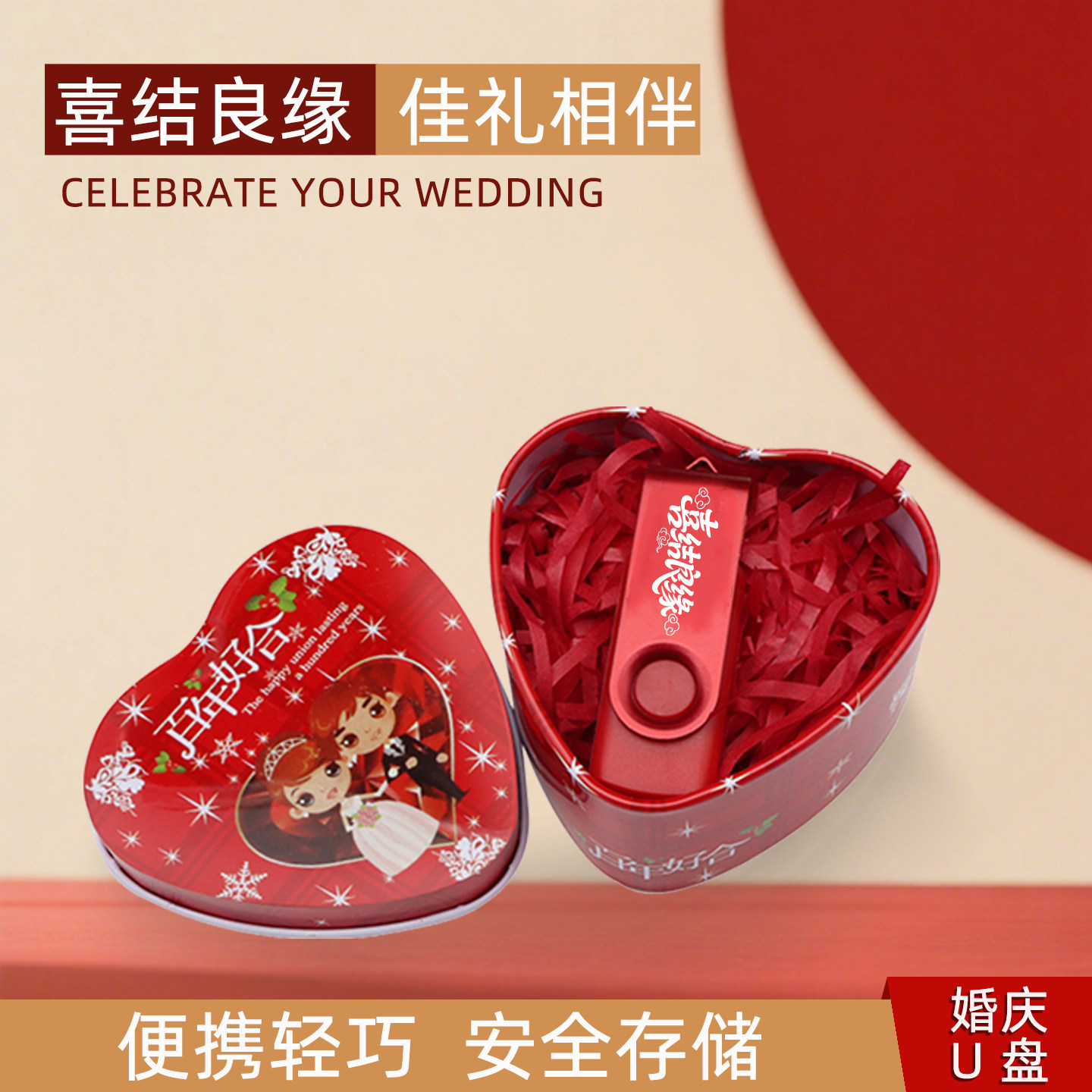 婚礼定制礼品优盘策划公司LOGO定制刻字婚庆u盘8G/16G/32G红色