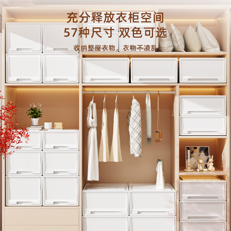 收纳箱抽屉式衣服收纳盒透明塑料家用裤子衣柜整理箱加厚储物柜子