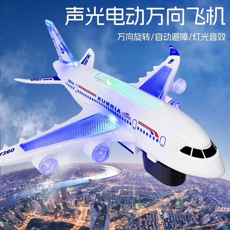 男孩电动飞机玩具拼装3岁4儿童空中万向巴士模型宝宝组装闪光客机