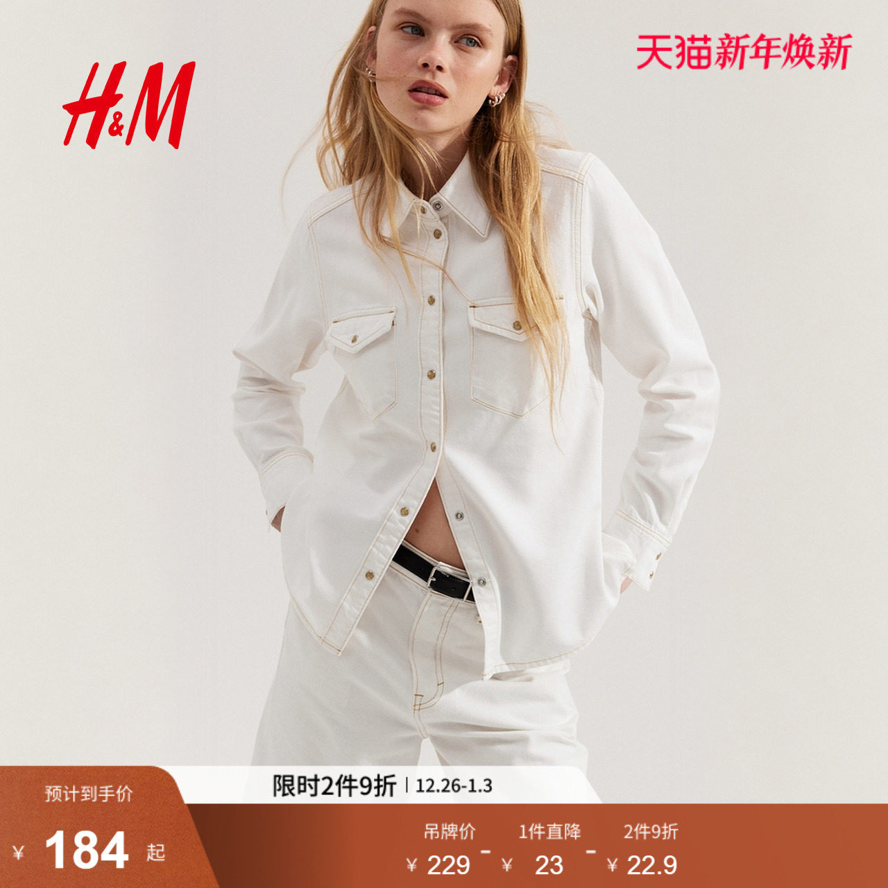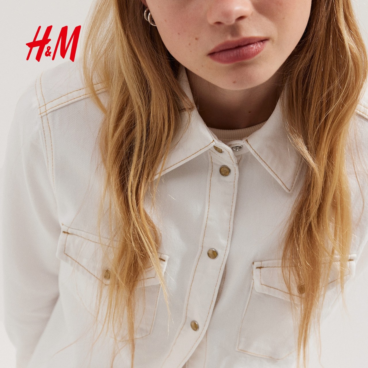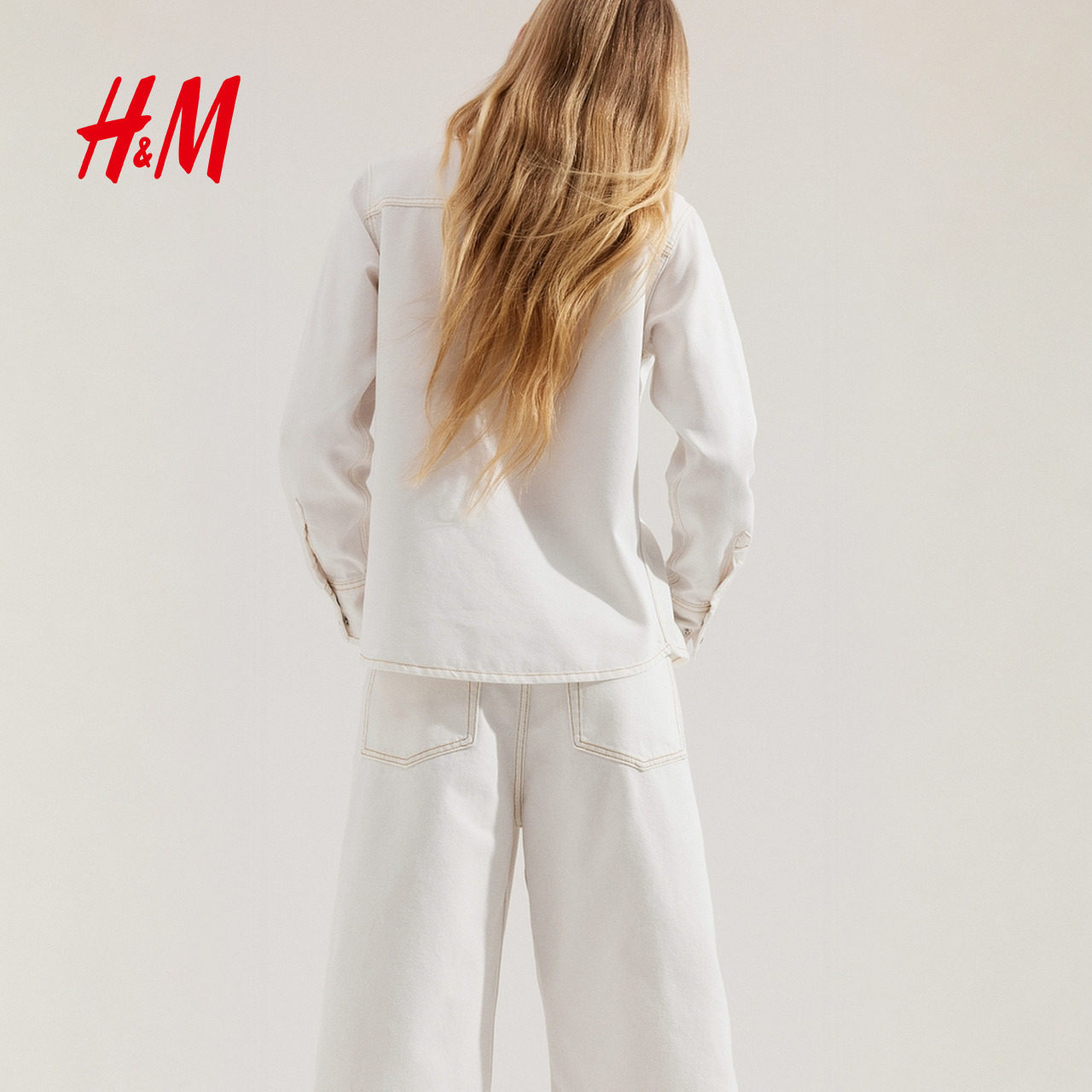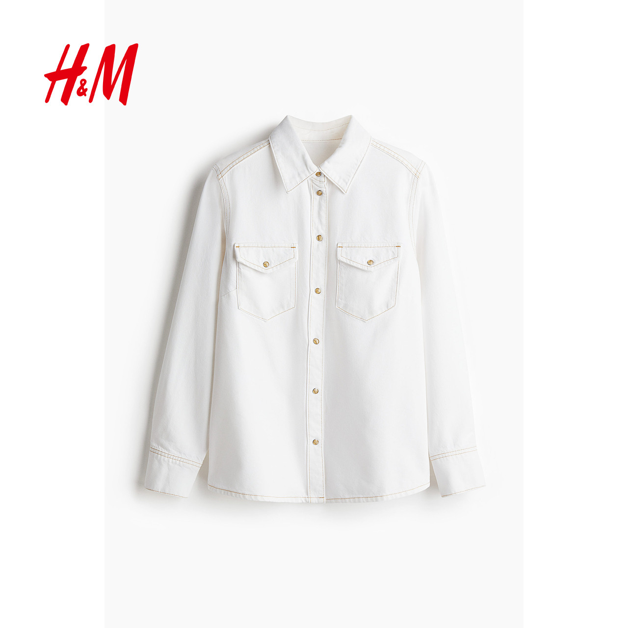 HM女装衬衫2025冬季新款长袖空调衫薄外套牛仔衬衣上衣1258303