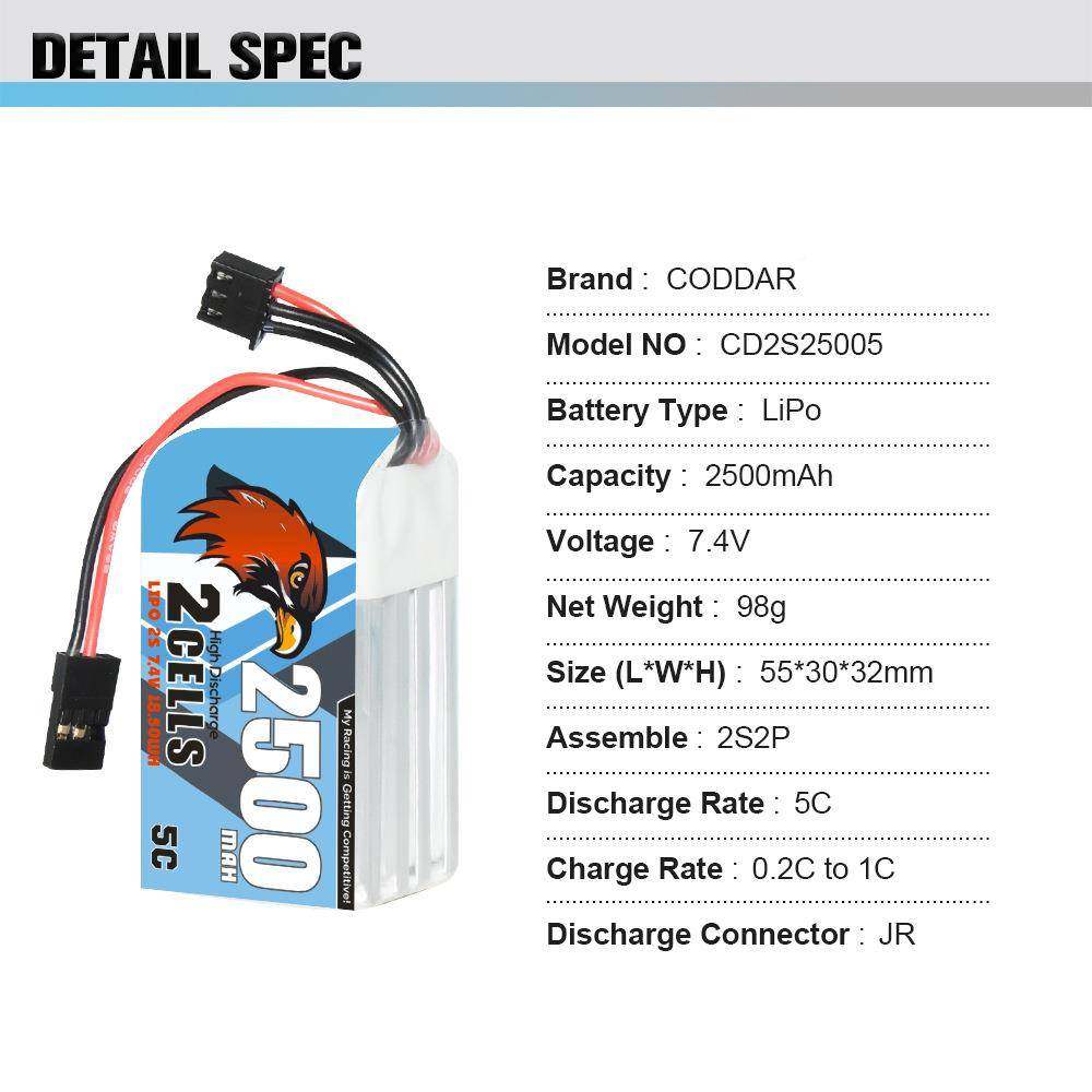 C829ORDDA鹰氪2500MAHV2S7.45C1/8车模伺服系统供电RC接收器电池