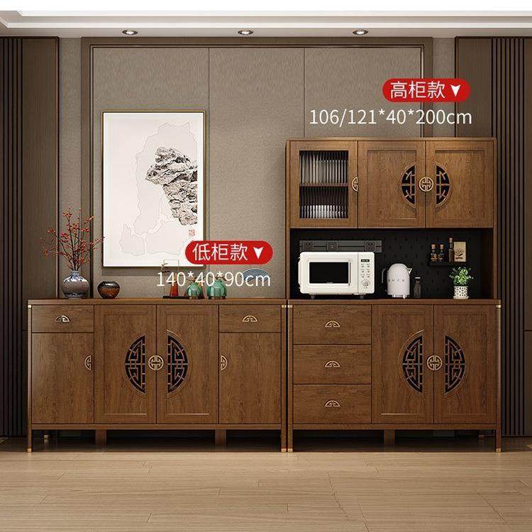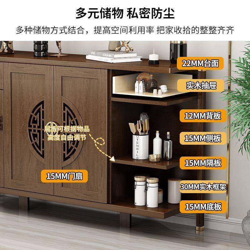 新中式餐边柜客厅靠墙一体储物柜新款收纳置物实木厨房茶水柜