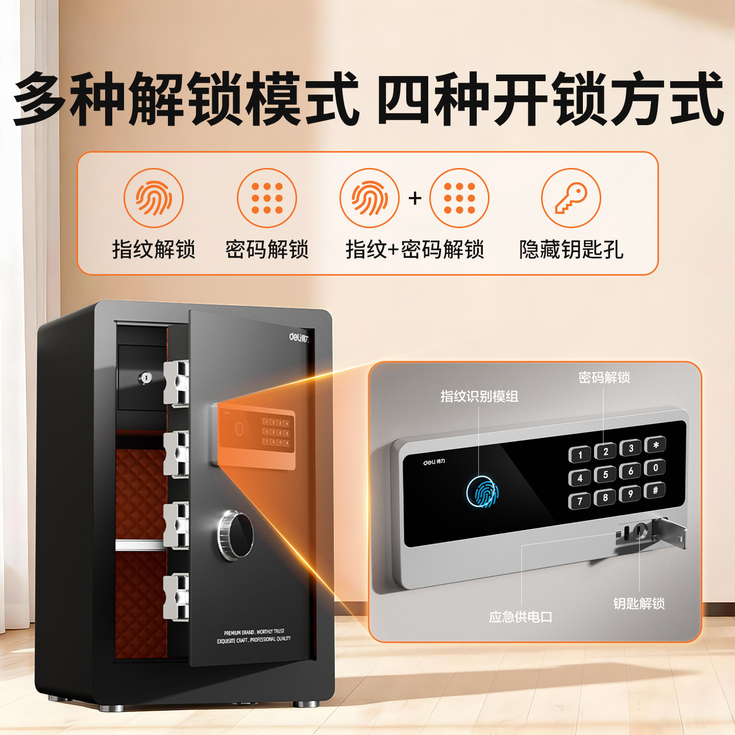 得力保险柜家用办公室专用电子密码保险箱指纹密码锁全钢隐形入墙床头柜衣柜大容量保管箱嵌入式防盗保密柜
