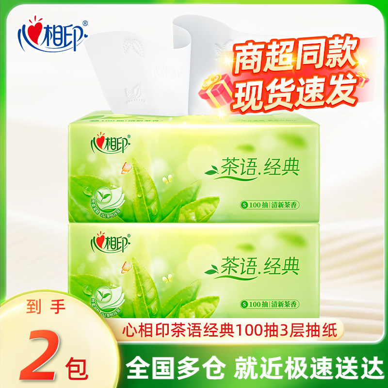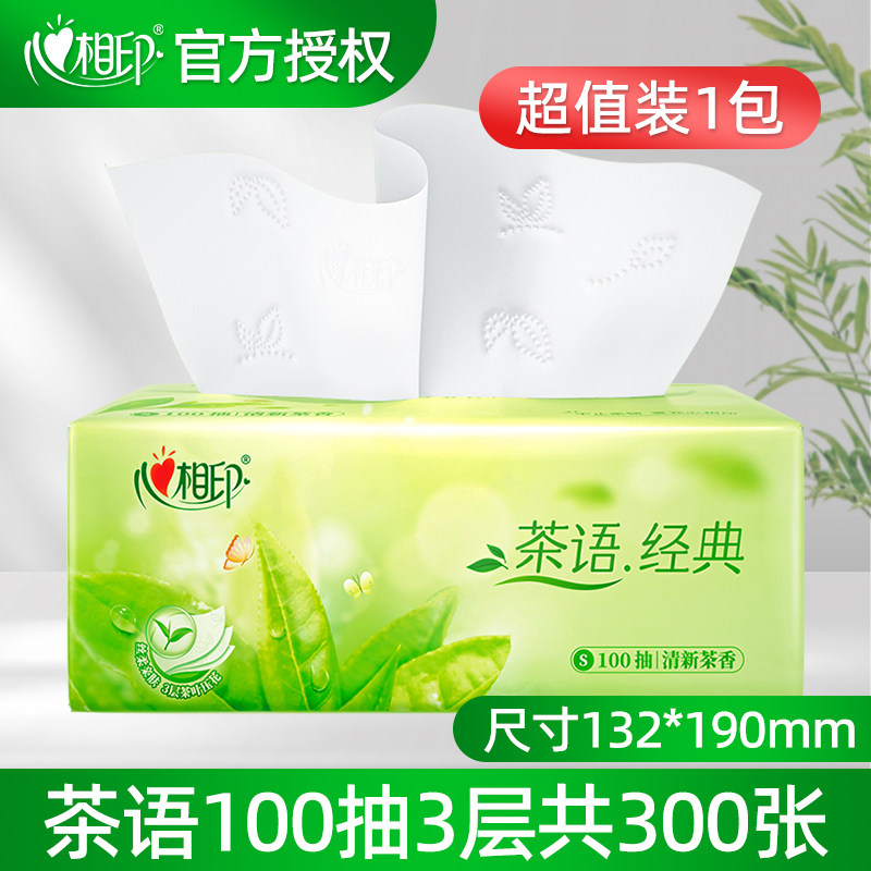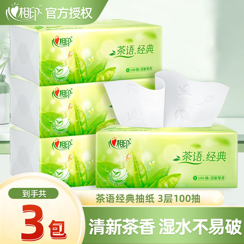 心相印抽纸茶语经典100抽3层卫生纸巾餐巾纸面巾纸茶香家用实惠装