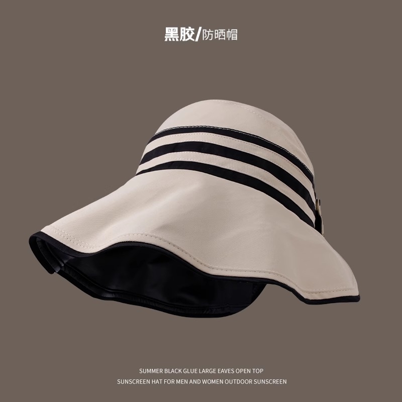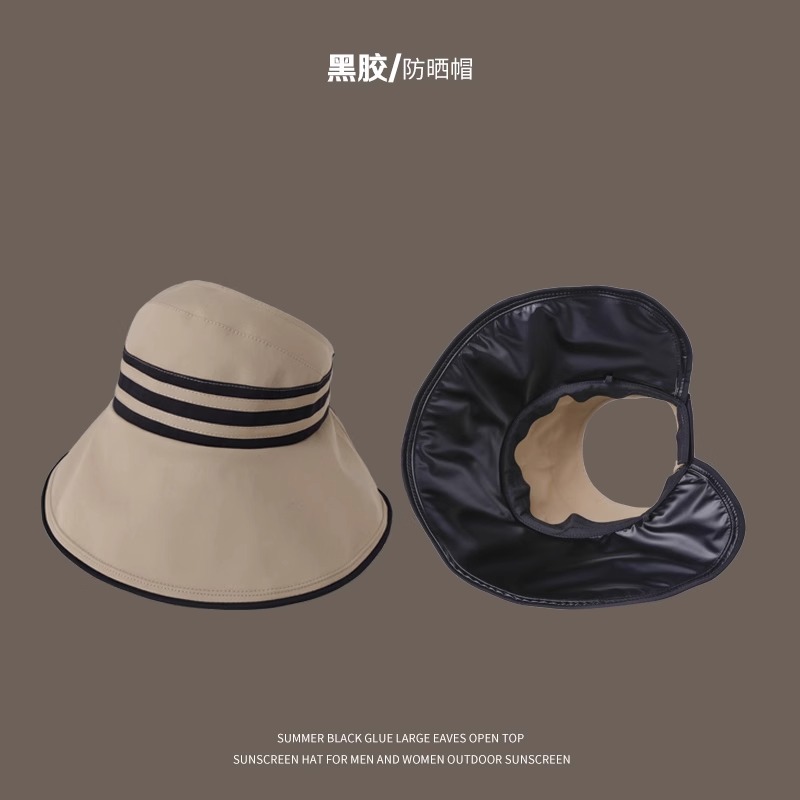 黑胶uv空顶防晒帽子女夏防紫外线遮脸遮阳帽可折叠渔夫帽大帽檐