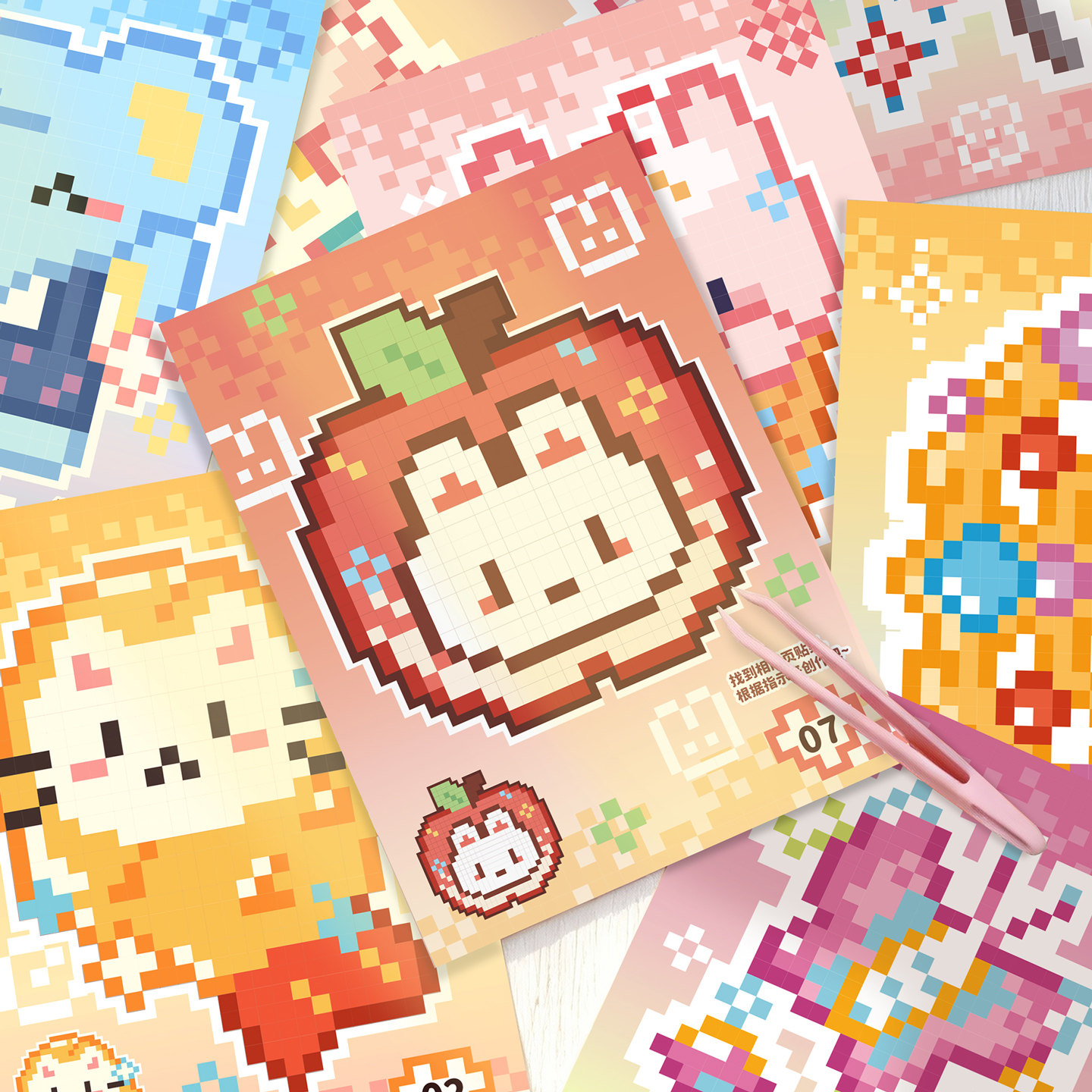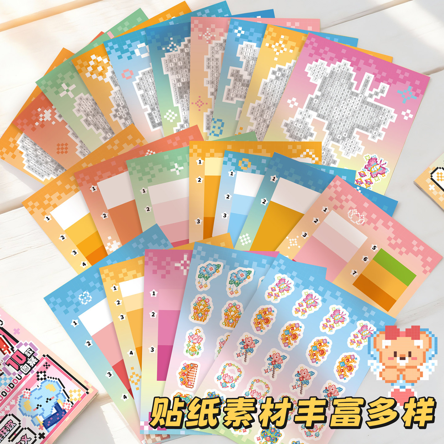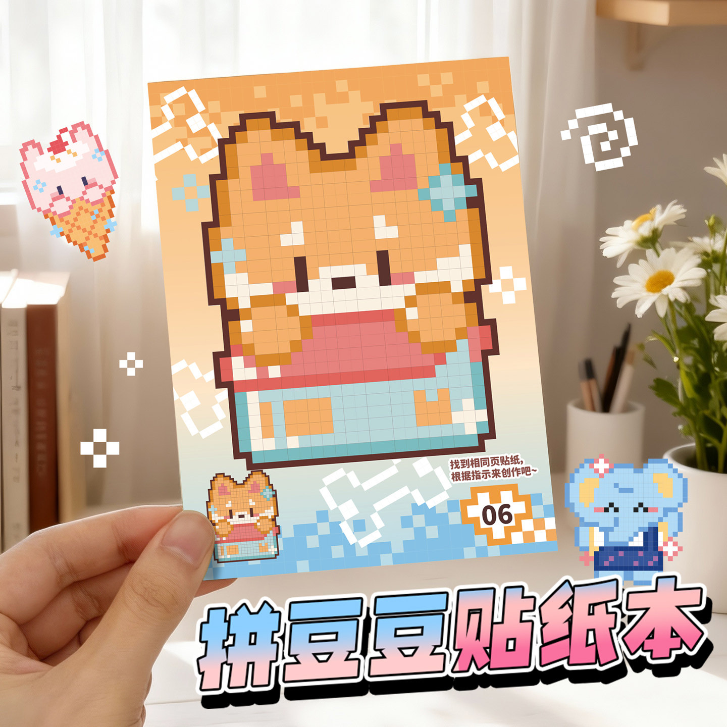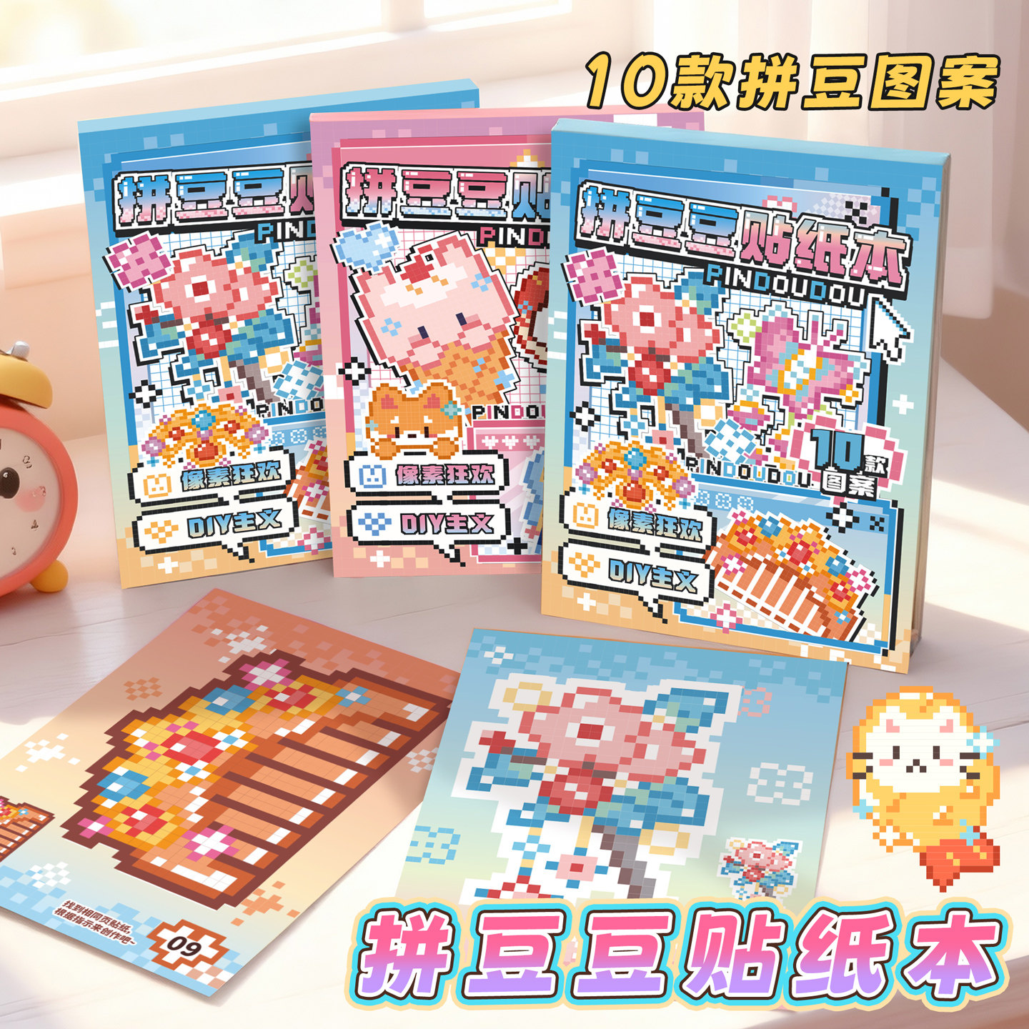 像素风拼豆贴纸本卡通可爱迷你豆豆本手工拼贴diy手帐装饰贴画趣味亲子互动桌面小游戏儿童益智玩具男女孩