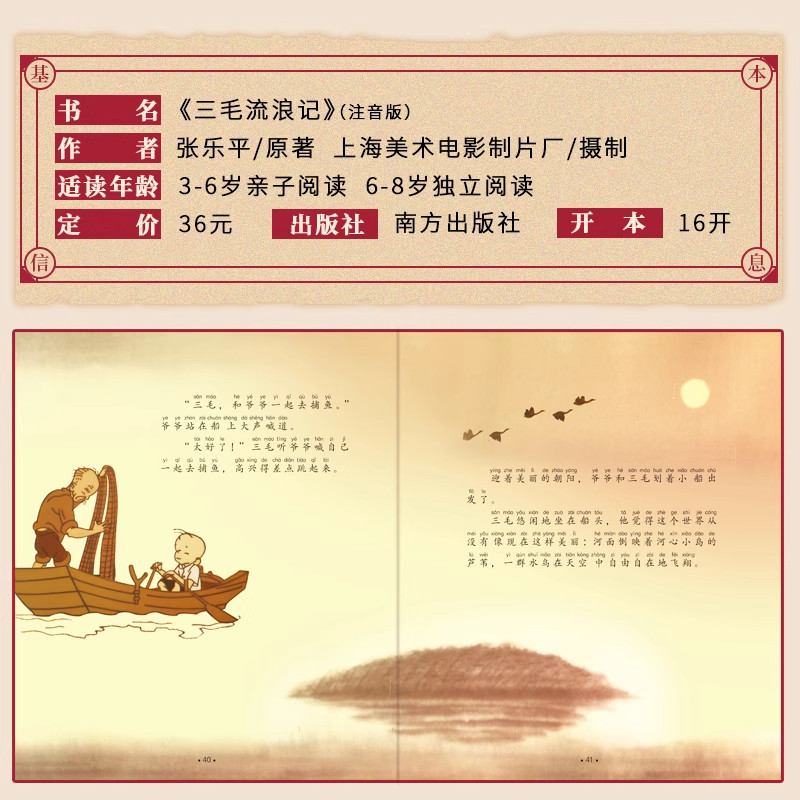 官方正版三毛流浪记全集彩图中国经典大全集三毛作品张乐平著小学生课外阅读书籍故事书一二年级6-12周岁儿童读物父与子童话注音版