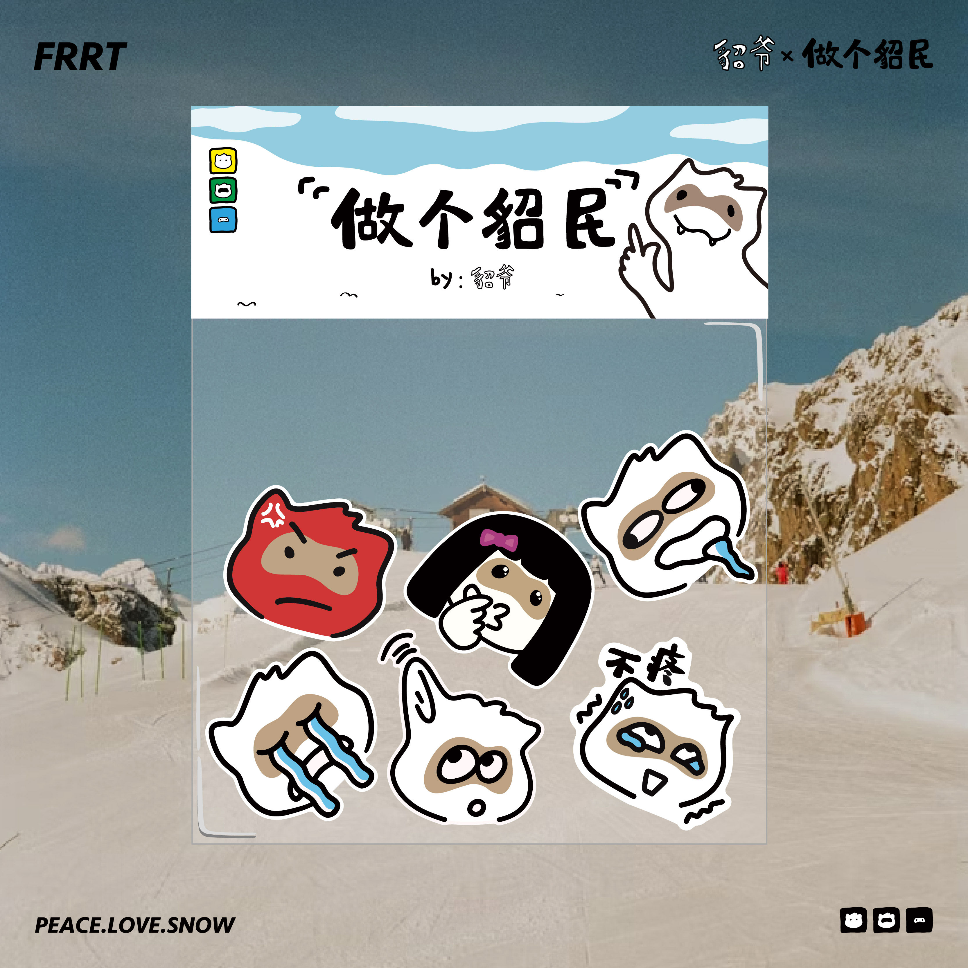 FRRT蒙眼雪貂 做个貂民 原创IP滑雪风防水贴纸笔记本滑雪板行李箱