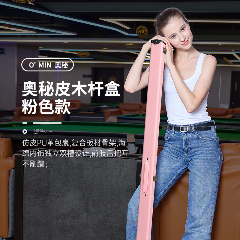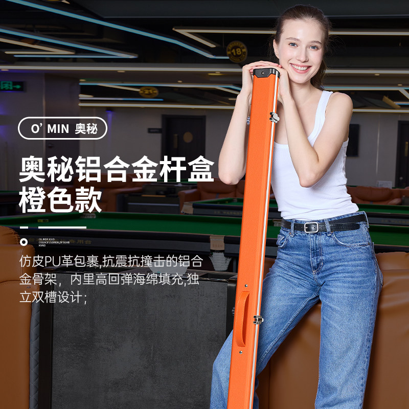 奥秘铝合金绒布斯诺克黑八台球杆一体保护盒杆盒双槽通杆杆盒配件