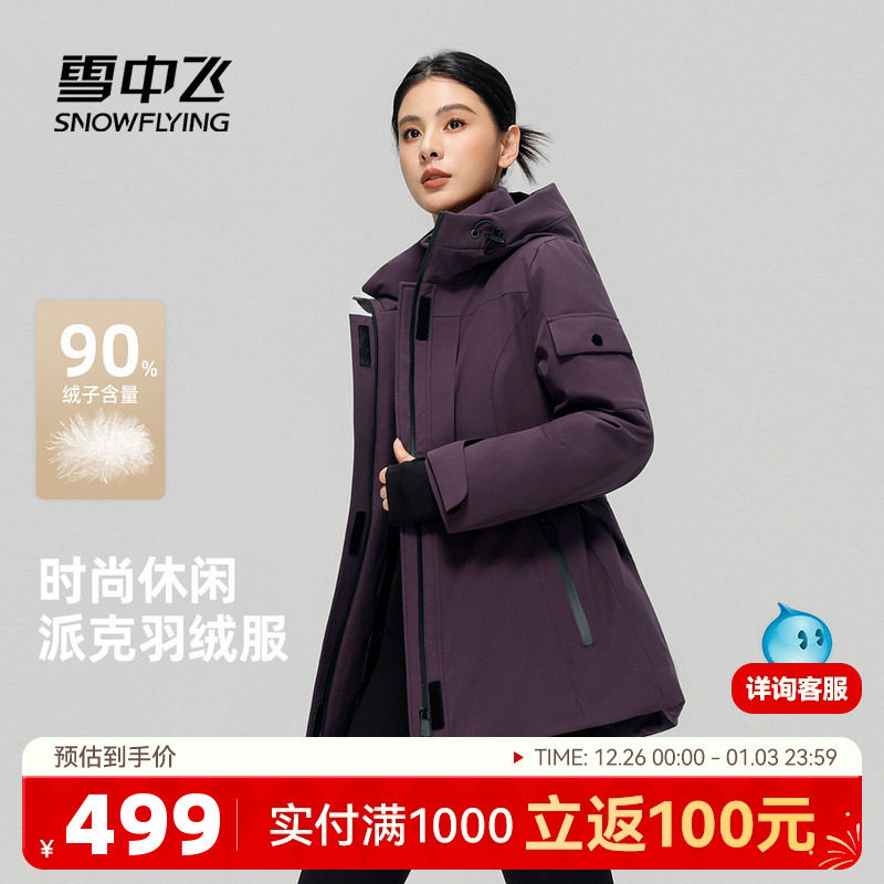 雪中飞2025冬新款羽绒服女士收腰系带工装风轻熟时尚户外外套