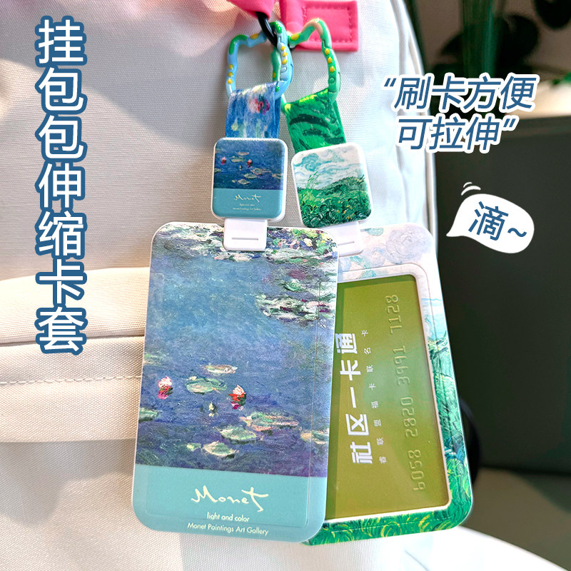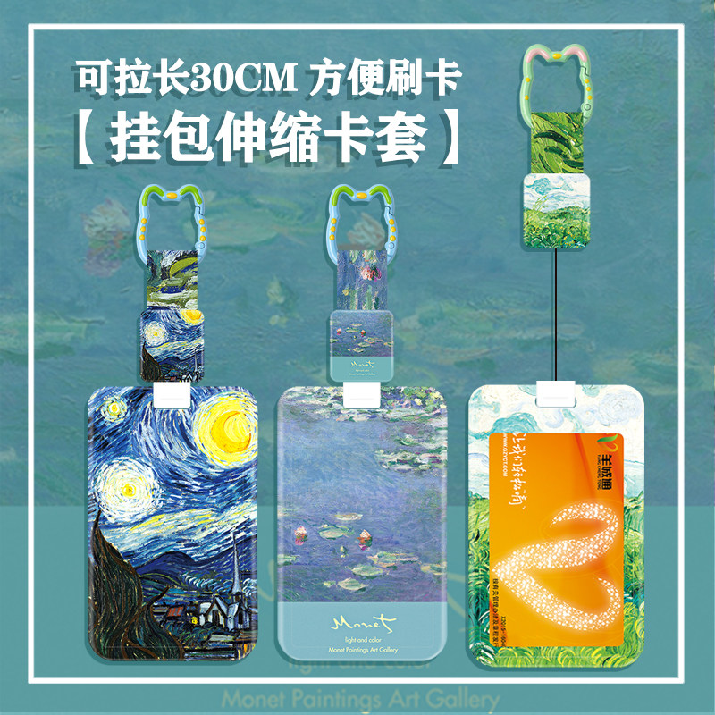 梵高挂包伸缩卡套易拉扣拉伸门禁卡刷卡工牌公交水卡饭卡身份证