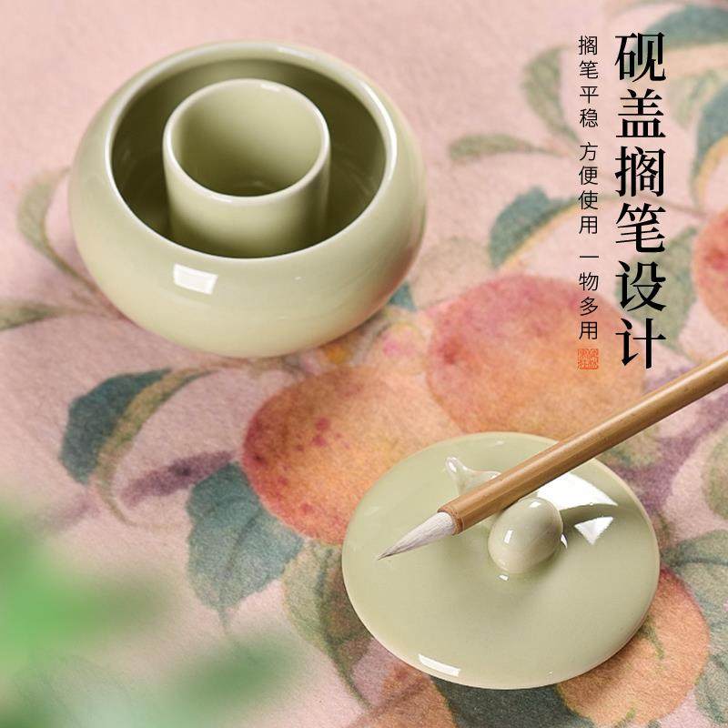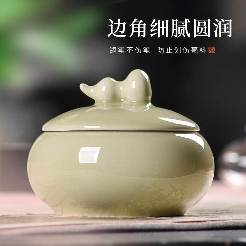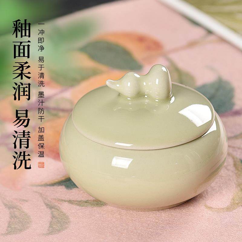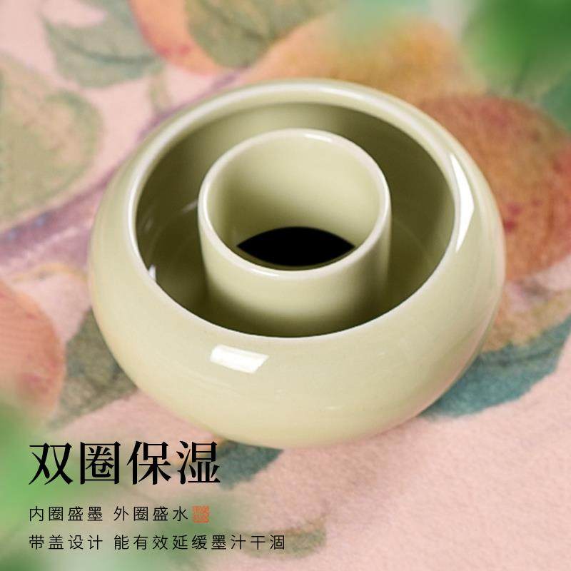 梅林笔庄陶瓷火锅砚台书法专用不干墨双圈保湿火锅墨盒带盖墨池墨