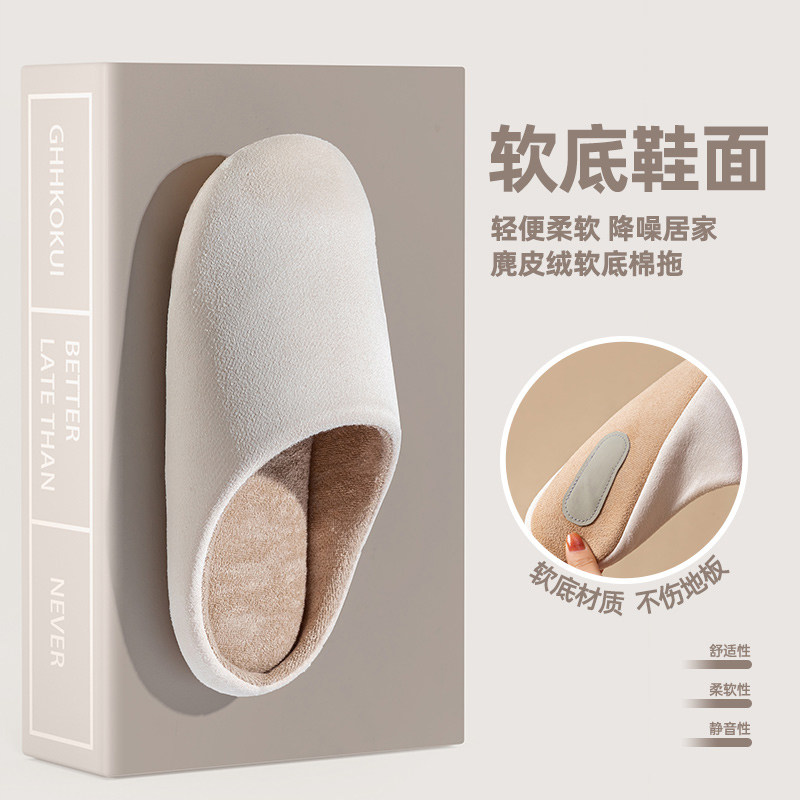 朴西棉拖鞋女士秋冬季厚底简约保暖室内居家用软底防滑情侣棉拖男