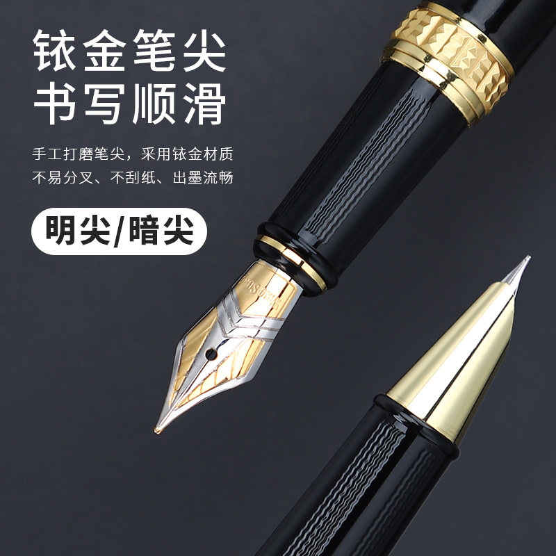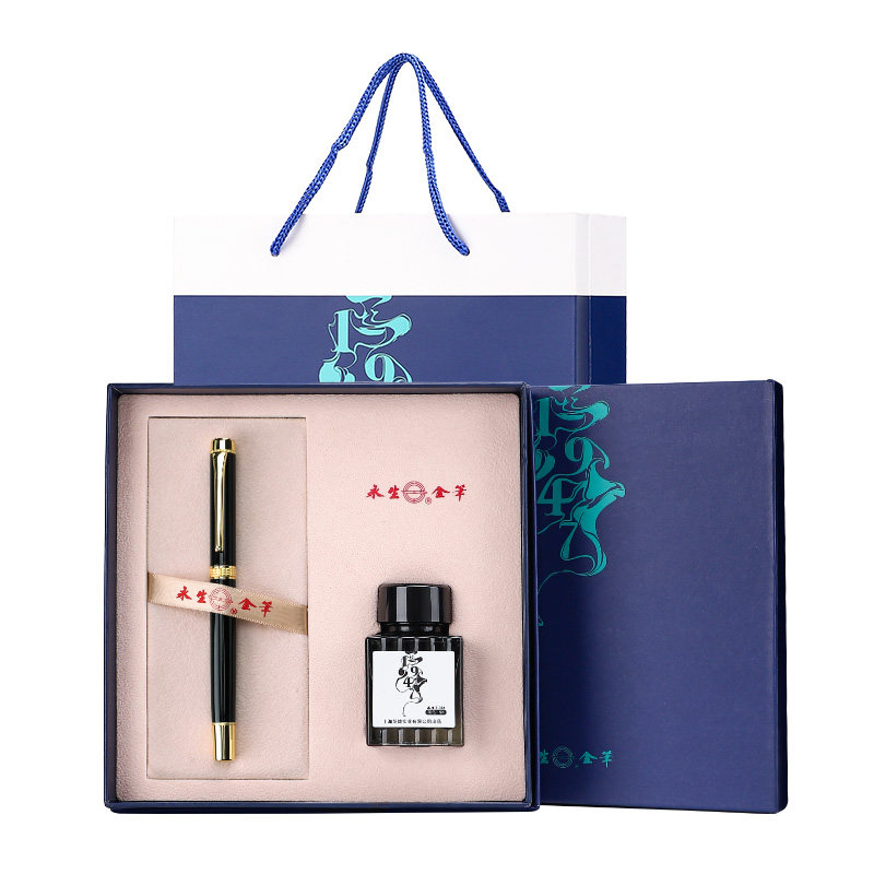 永生3812成人商务黑色男士办公签字钢笔送50ml墨水送3.4通用墨囊免费刻字礼盒装班级父亲节礼物练字套装送礼