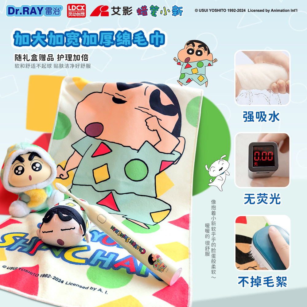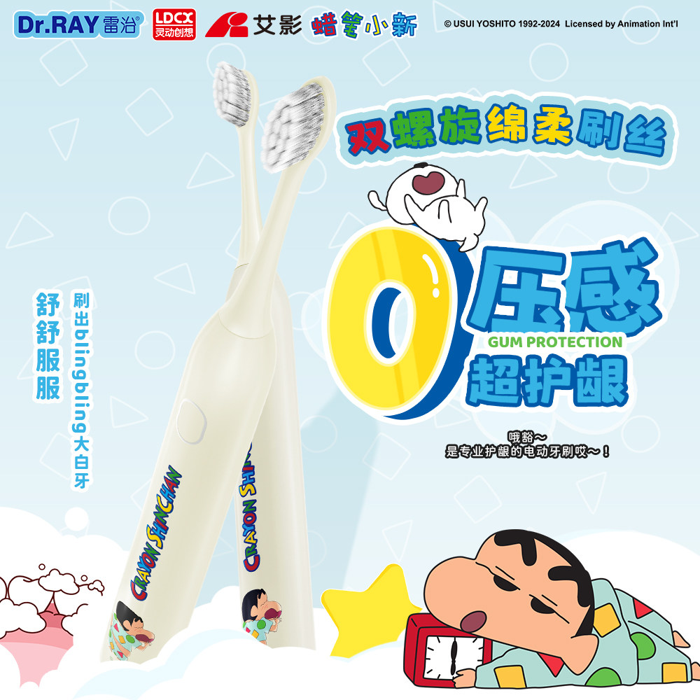 蜡笔小新声波电动牙刷成人男女牙膏礼盒套装青少年软毛充电便携