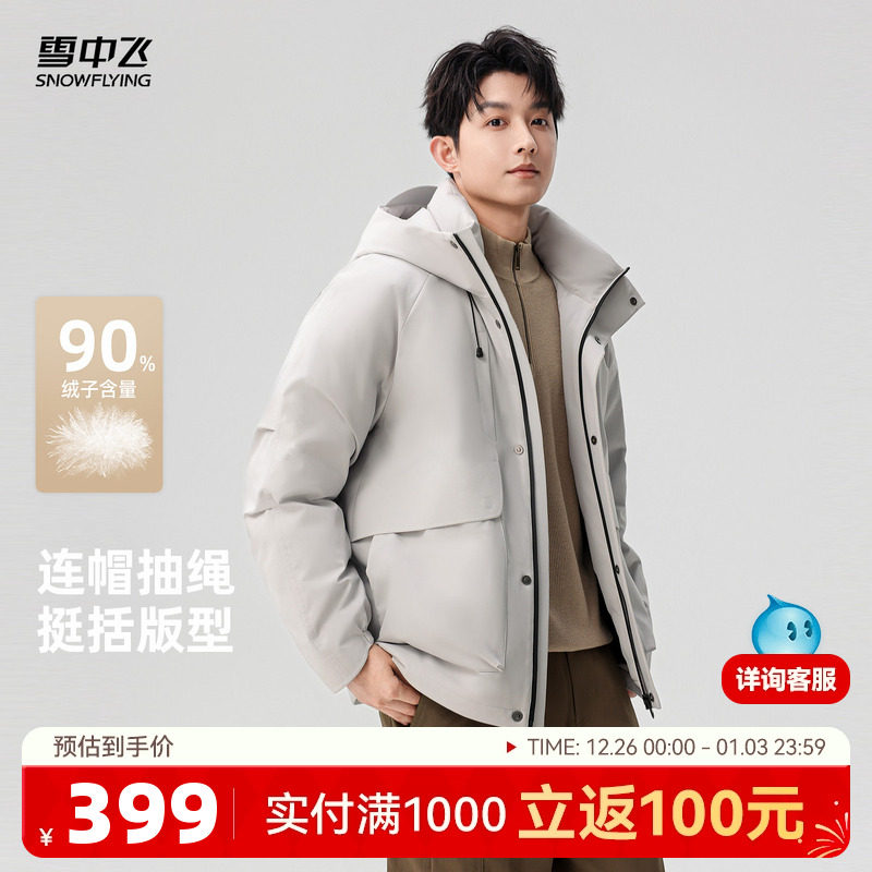 雪中飞2025冬新款男款羽绒服机能风连帽冲锋工装风保暖外套