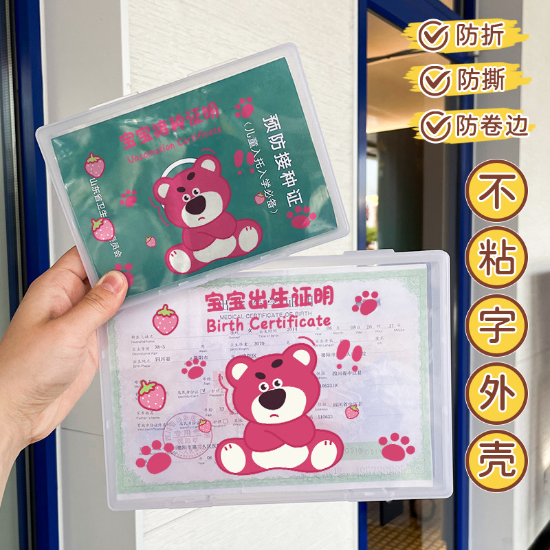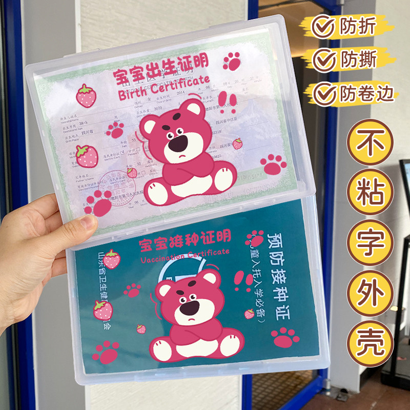 不粘字出生证收纳保护盒卡通熊外壳套疫苗户口本通用2025年防折撕