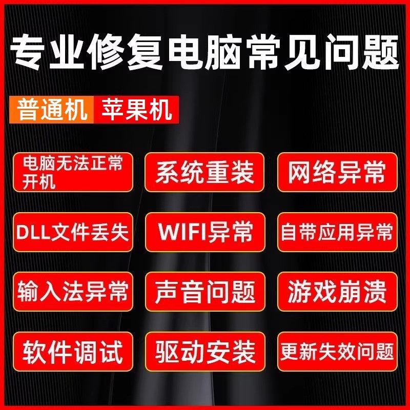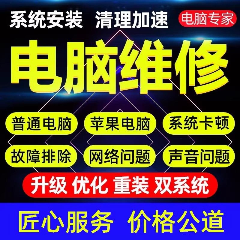 电脑维修远程修复故障蓝屏清理笔记本卡顿咨询11系统重装在线服务
