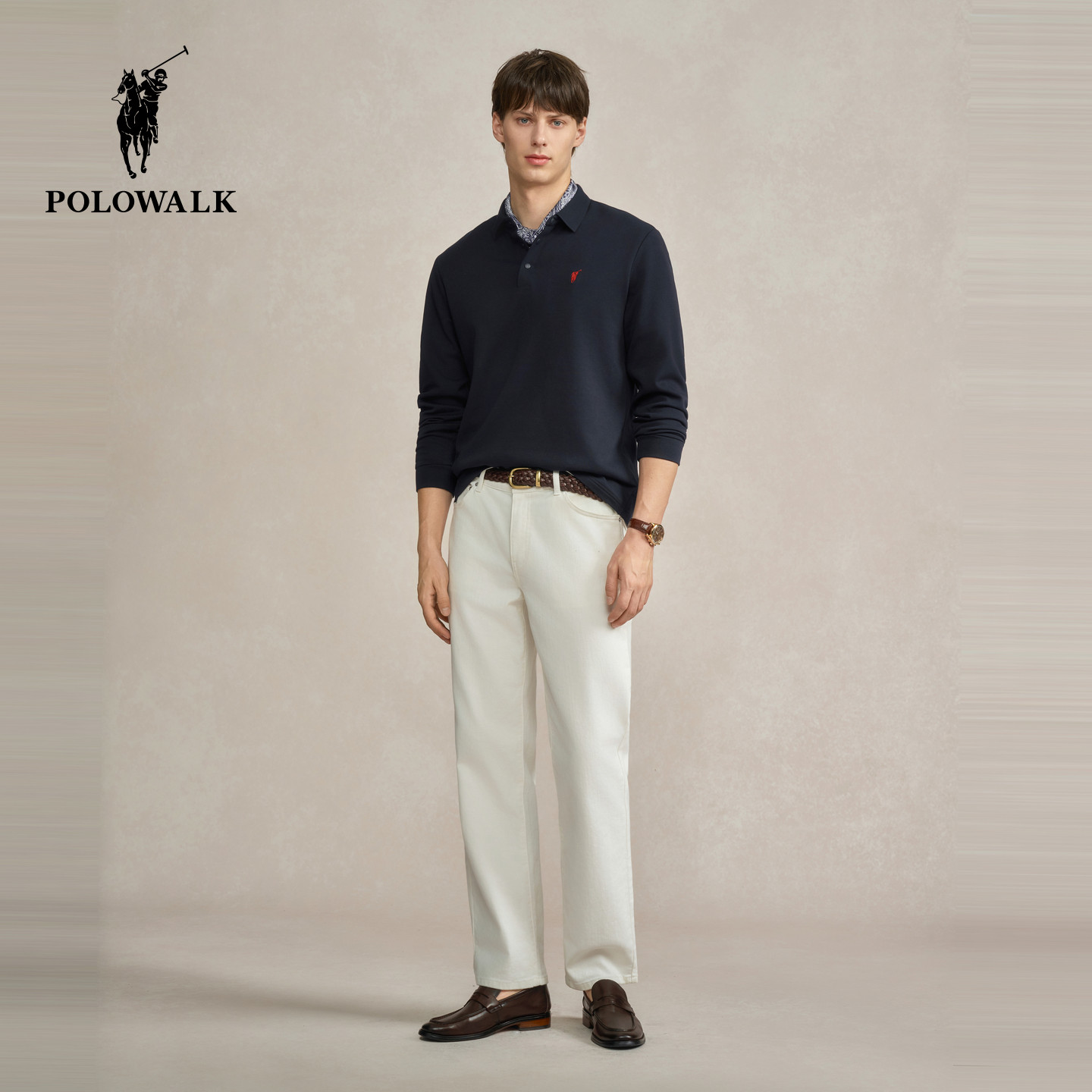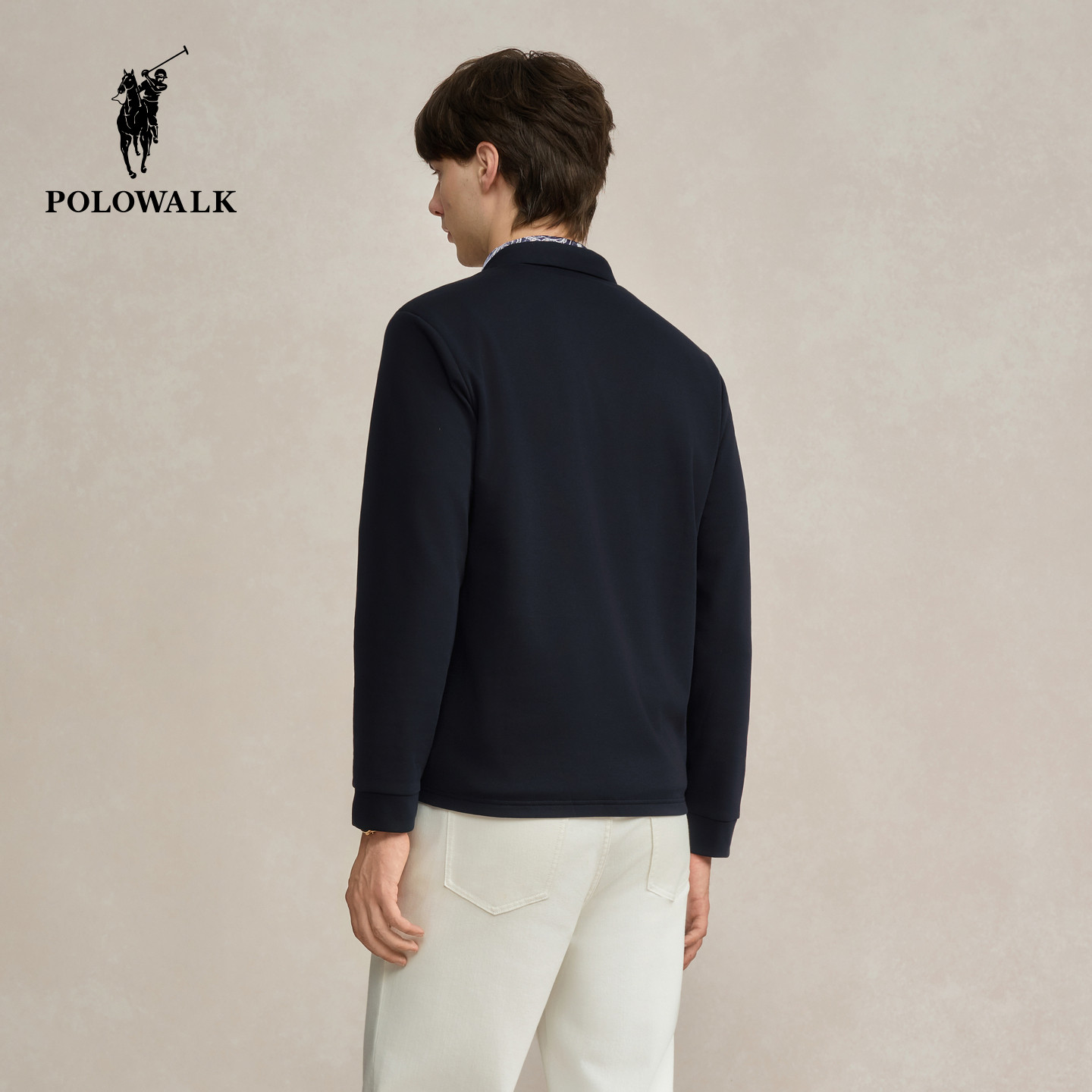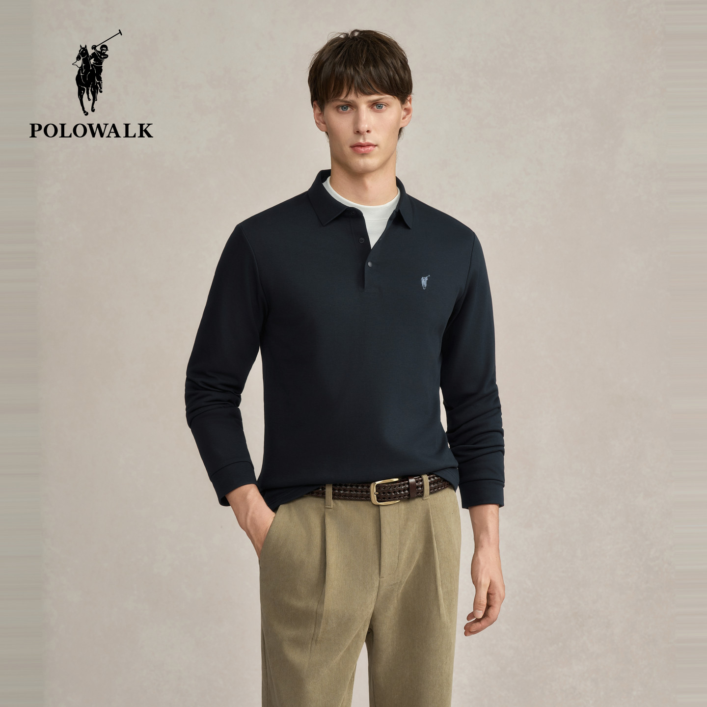 POLOWALK男式长袖T恤2025冬季新品商务休闲翻领加绒上衣打底衫男