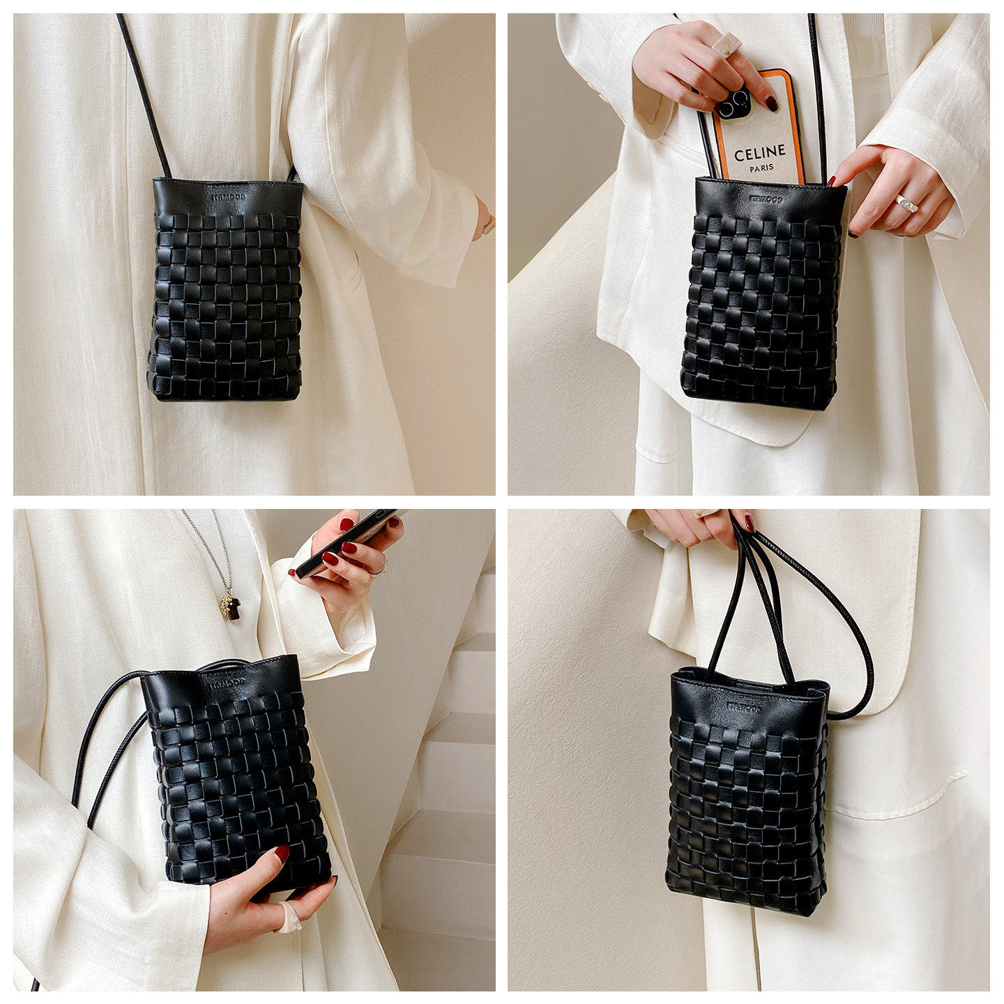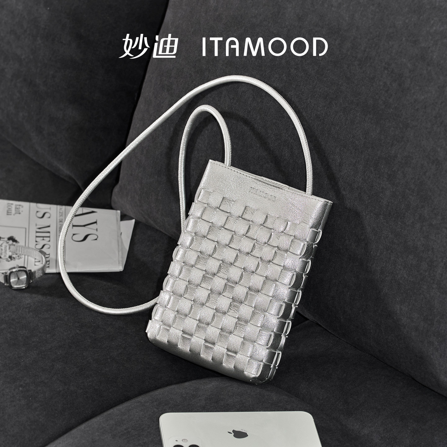 羊皮手机包妙迪新款轻便真皮编织单肩斜挎小包包女上班杂物小拎包