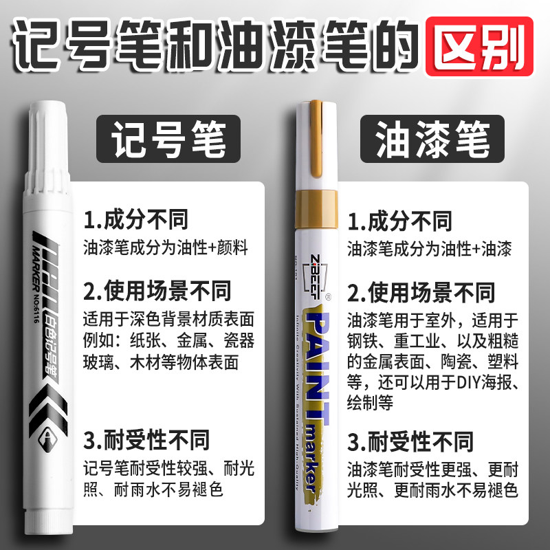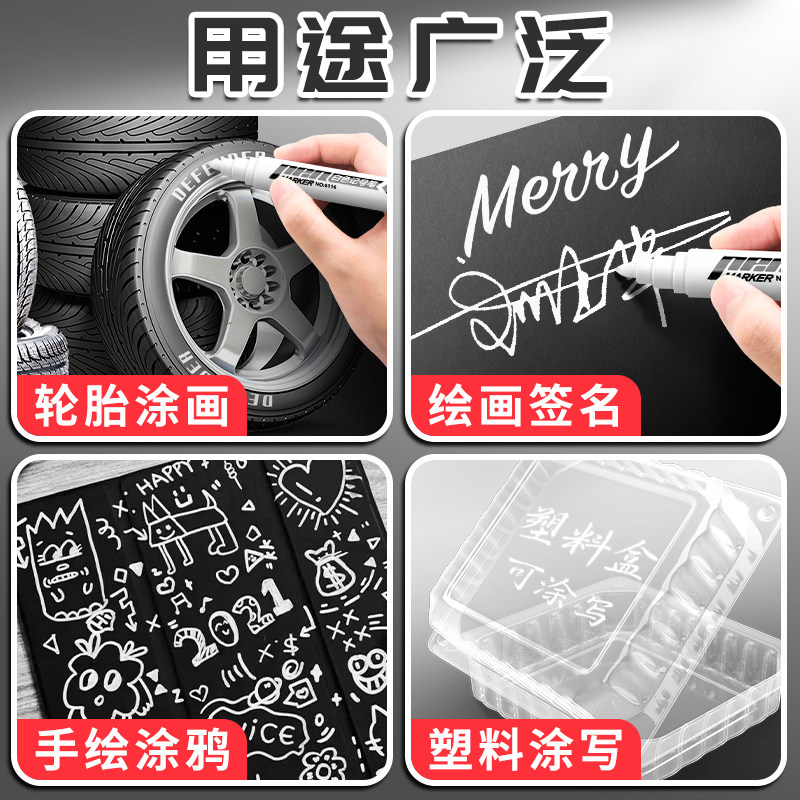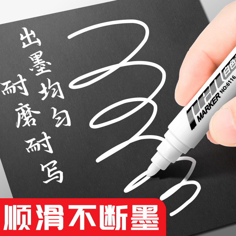 白色记号笔不易掉色防水粗头速干白色油漆笔轮胎补漆美术绘画高光笔学生用马克油性签字笔木工工地专用大头笔
