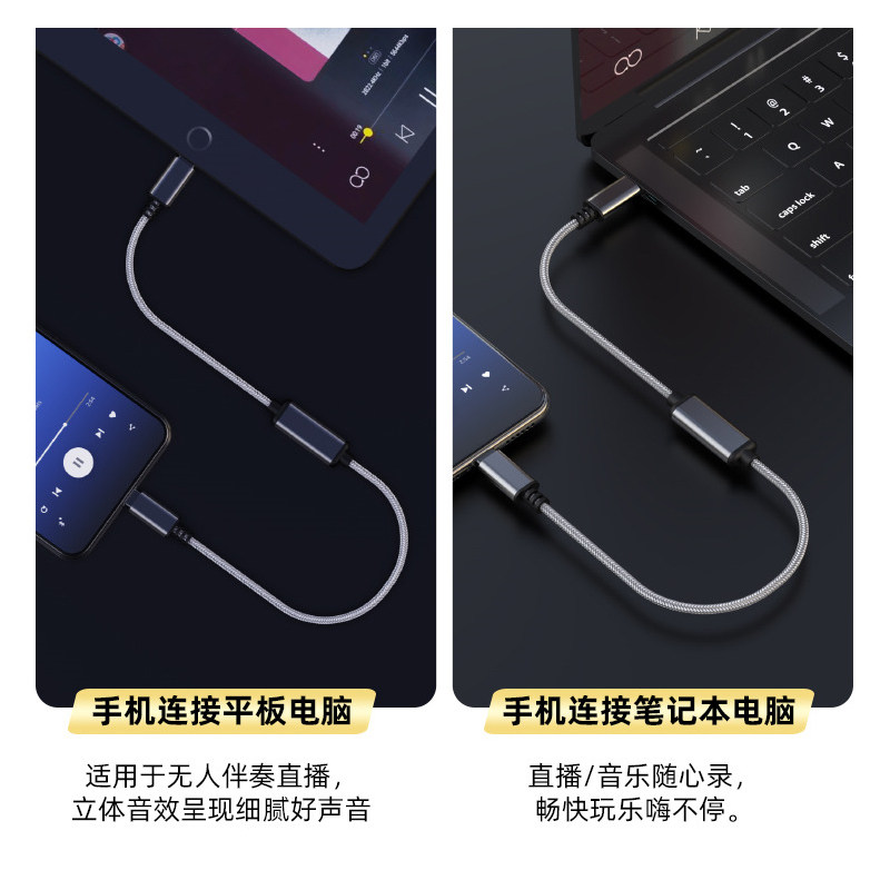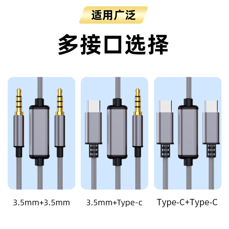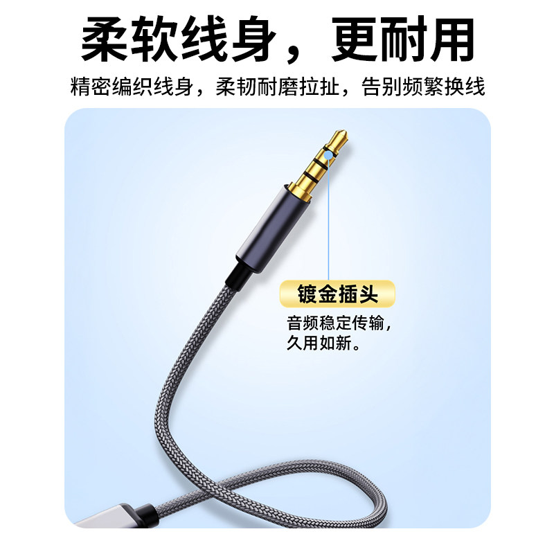 音频对录线双向互录转接线3.5mm转Type-C连接音响音频编织转接线