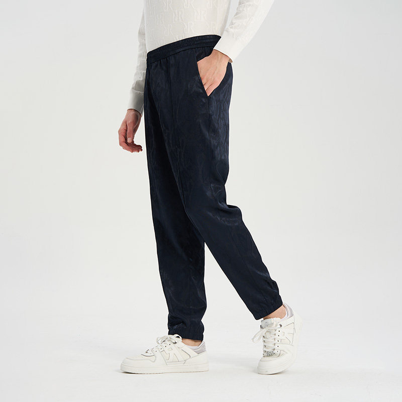 RARE威雅男裤夏季新款深藏青提花收口飘飘休闲裤薄款透气裤子