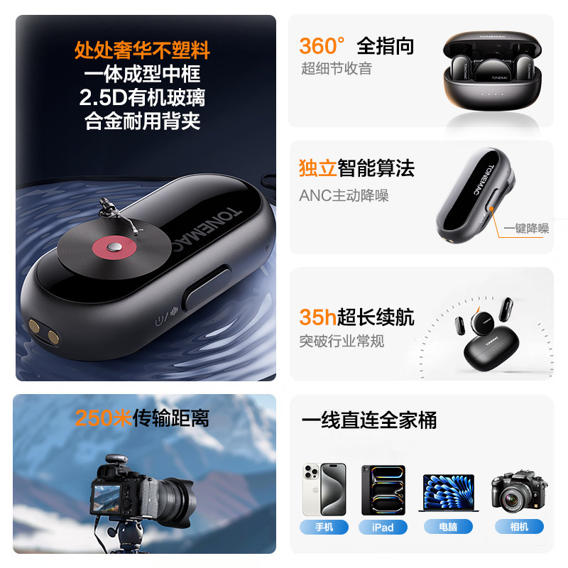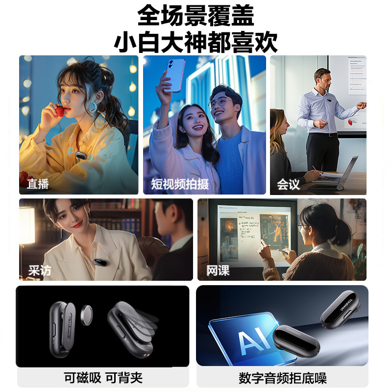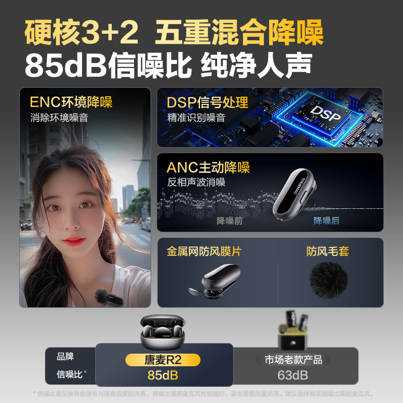 唐麦R2直播领夹式麦克风设备无线话筒降噪收音麦录音主播抖音手机