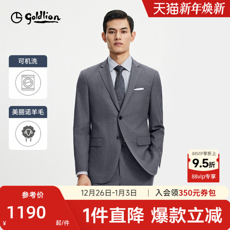 【可机洗羊毛】金利来25秋冬男士西装灰色花纱修身商务正装西服男