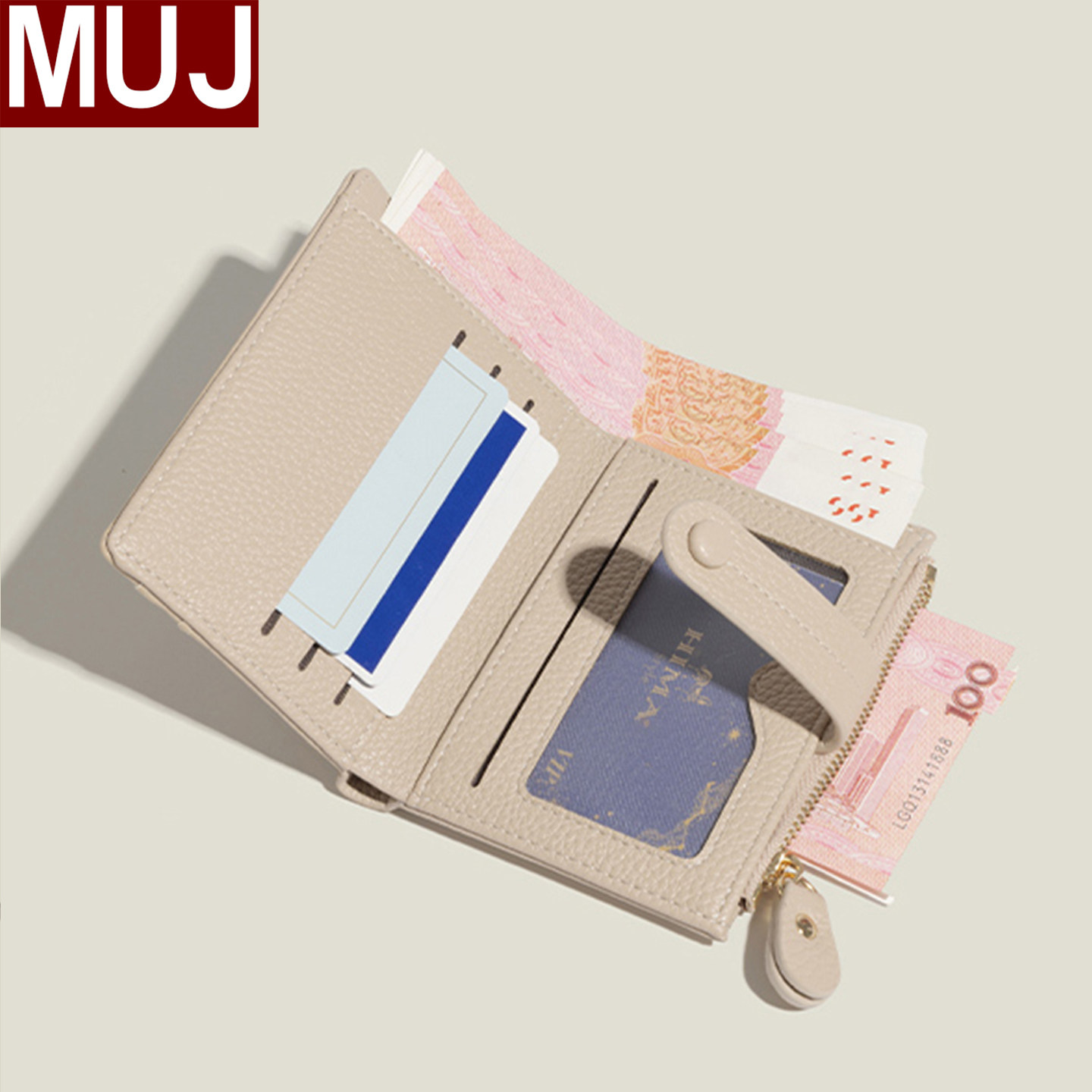 MUJ新款钱包女轻薄小巧多卡位小众设计折叠卡包零钱包二合一证件