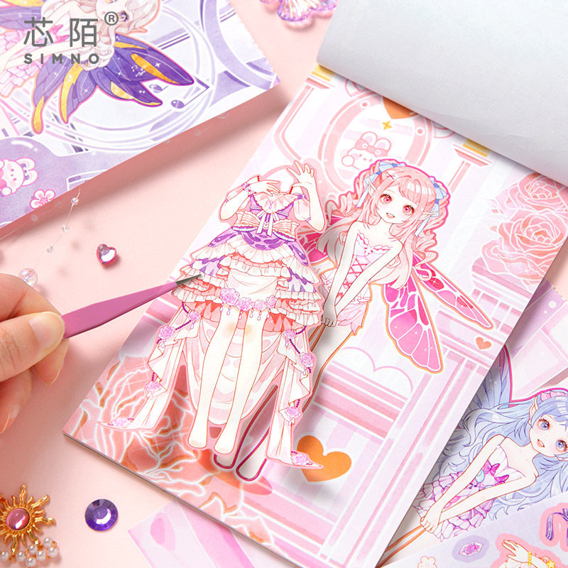 芯陌芯光少女精灵换装贴纸本新款高颜值儿童生日礼物6+12可爱少女心公主换装衣橱贴纸本女孩手账装饰素材贴画
