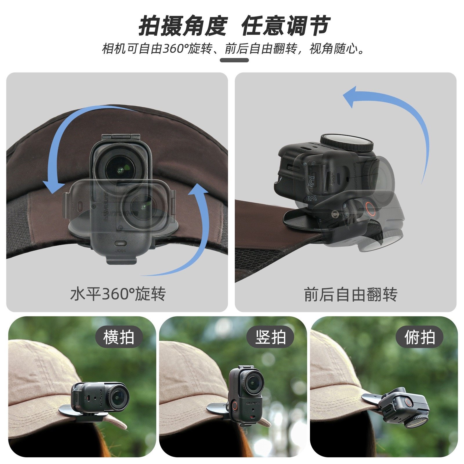 适用大疆灵眸Osmo Nano帽檐夹万向旋转调节视角运动相机拍摄配件