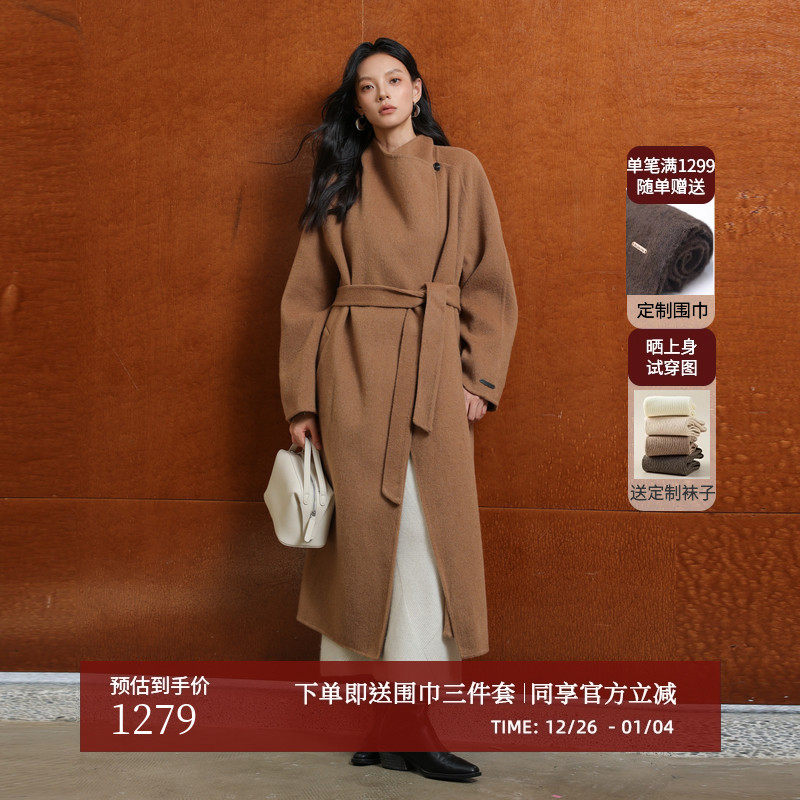 【专柜正版】高端双面羊毛羊绒毛呢大衣双排扣毛呢外套时尚洋xz8