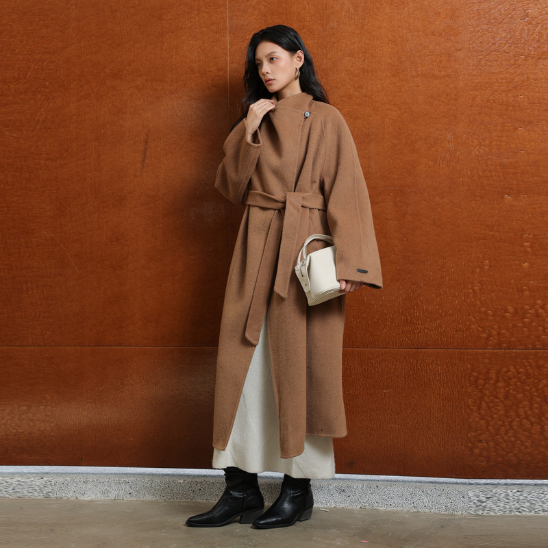 AIRIQI冬季新款松弛感收腰荡领全羊毛双面呢毛呢外套女AH44DY161