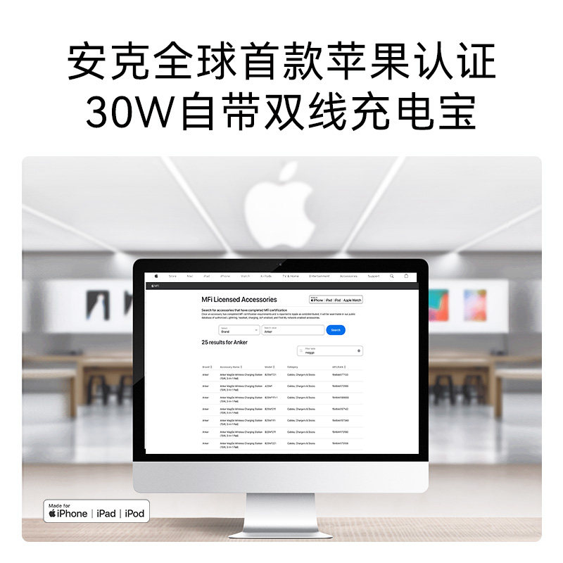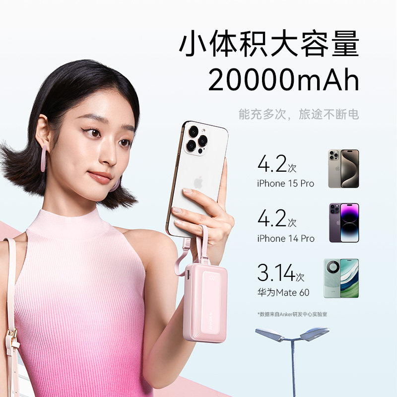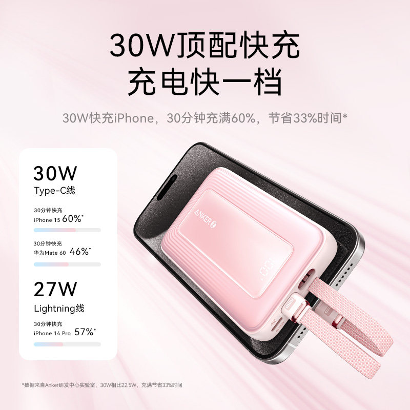 【新国标3C认证】Anker安克自带线充电宝20000毫安大容量2025新款30W快充超薄小巧便携移动电源适用苹果安卓